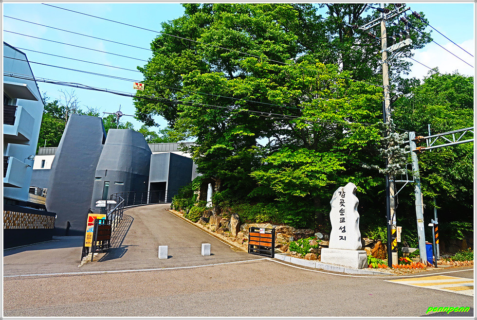 기념공원을 뒤로하고 강화대교 교각 아래를 통과하면 갑곶순교성지인데, 현재 건립중인 문루는 이름이 없어 잘 모르겠습니다. 1866년 병인양요(1866년) 때 조선이 프랑스인 성직자 9명을 처형한 책임을 물어 프랑스 함대가 갑곶돈대로 상륙해 후퇴한 후 강화지방에서는 혹독한 박해가 시작됐고 갑곶성지가 보이는 백사장에서 많은 신자가 순교했습니다. 1871년 병인양요 때는 미국 군함에 다녀왔다는 죄로 여러 신도가 갑곶 진두에서 순교했는데 천주교 인천교구는 갑곶 진두의 정확한 위치를 찾아 지금의 갑곶 순교성지를 조성(2004)했습니다.