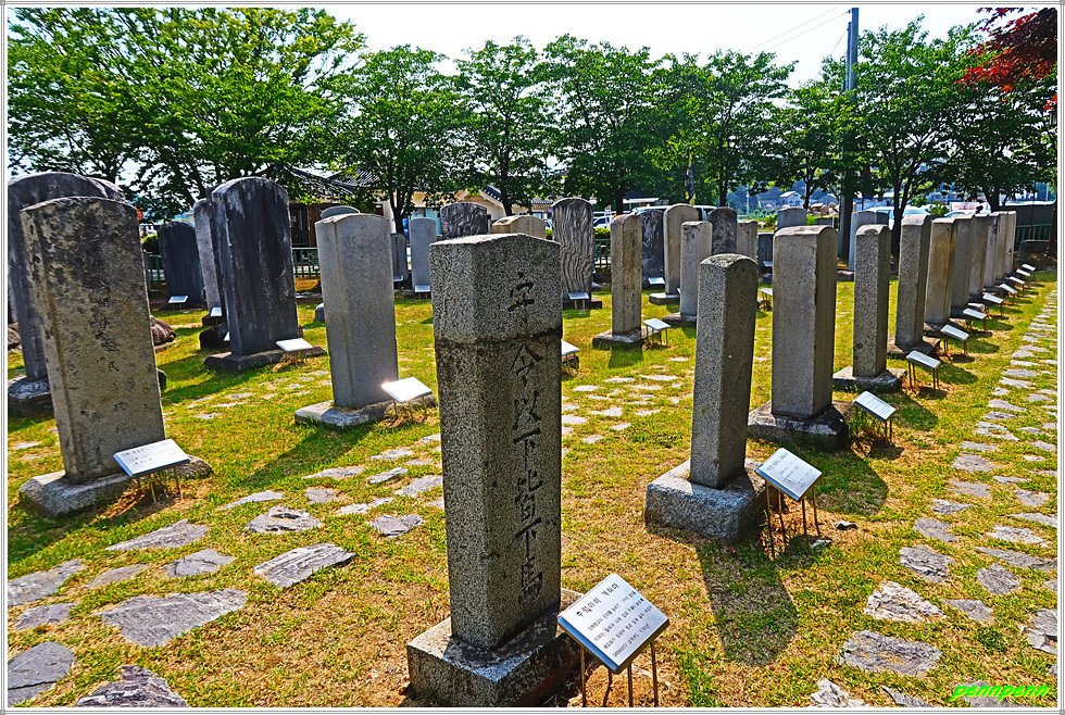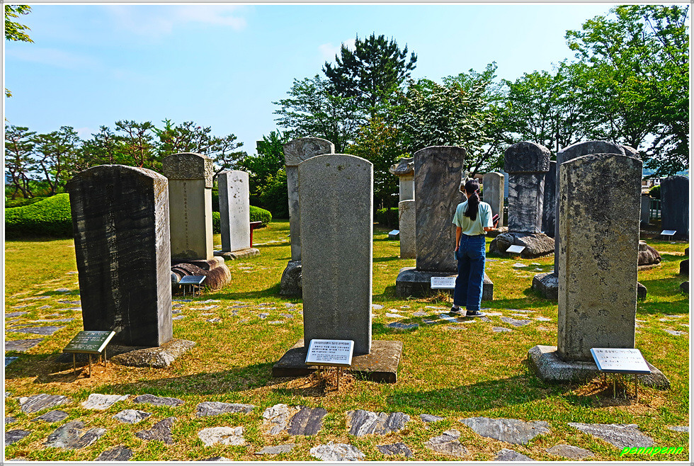 금속활자 중흥기념비 뒤에는 강화비석군이 있습니다. 이 비석군은 조선시대 선정을 베푼 유수.판관.군수 등의 영세불망비 및 선정비, 자연보호의 일환으로 세운 금표, 삼충신(강홍업, 구원일, 황성신)을 기리는 삼충사적비 등 모두 67기의 비석이 있습니다.