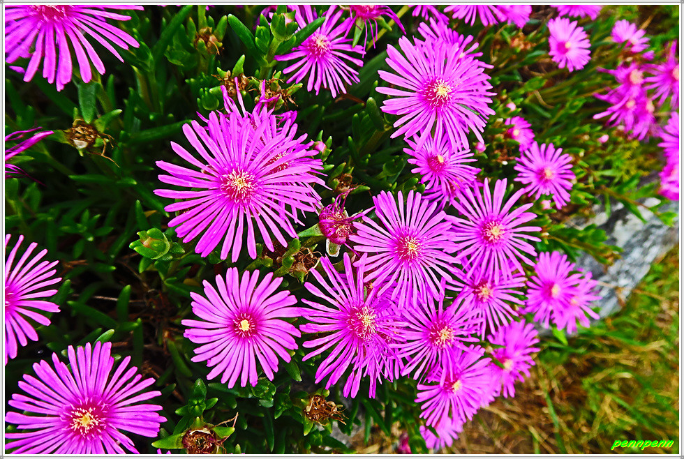 잎 모양과 무리 지어 피는 모습이 채송화와 비슷해 “사철채송화”라고도 합니다.