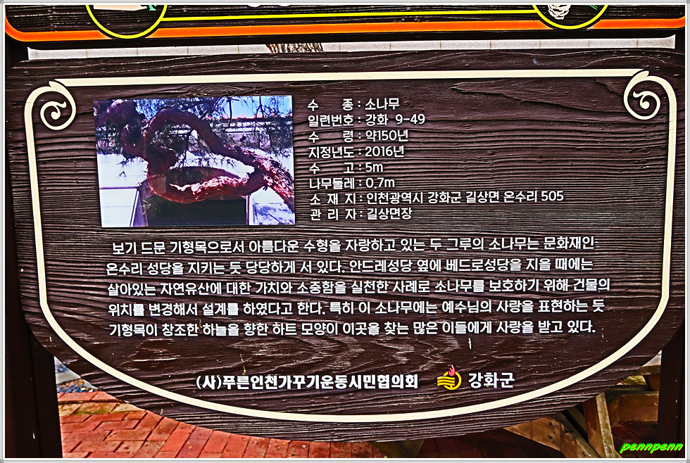 인천광역시 강화군 길상면 온수리 소재 강화 온수리 성공회성당은 1906년에 건립된 대한성공회의 한옥성당으로 “성 안드레 성당”이라고도 합니다. 당시 대한성공회 “조마가” 주교 때 지은 건물입니다. 성당입구에는 사진촬영명소라는 안내문이 있군요.