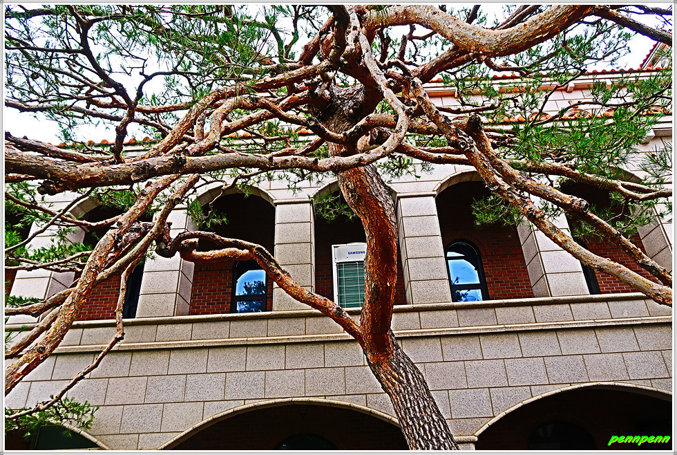 신관 앞에는 수령 약 150년이 넘은 소나무 한그루가 자라고 있어 오랜 세월의 흔적을 말해주고 있습니다. 신관 우측에도 수령 150년을 넘은 소나무 한그루가 있는데 모양새가 매우 특이한 노거수입니다.