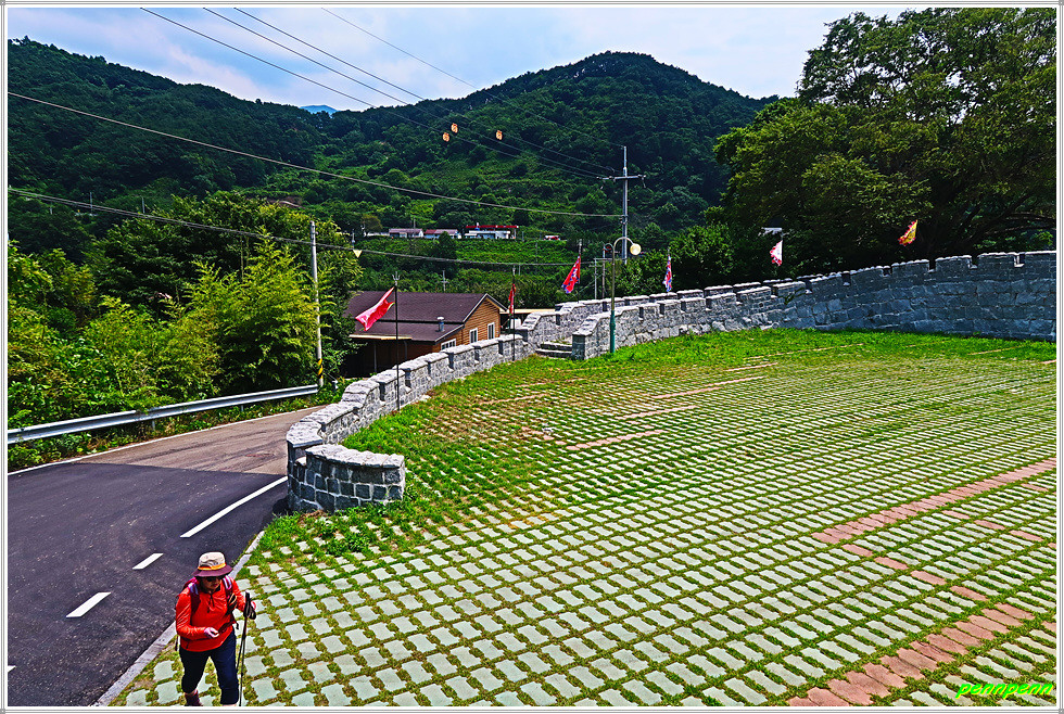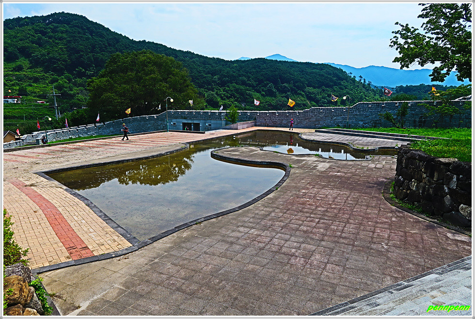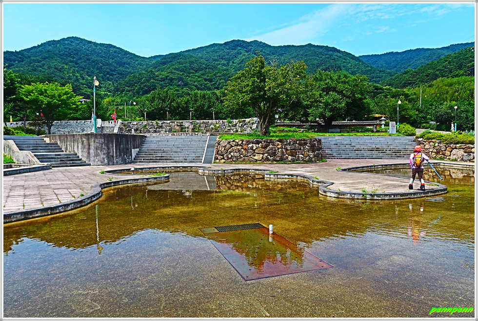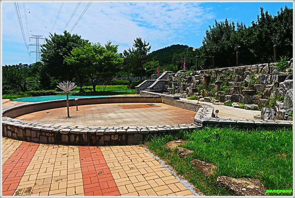 산수유 시목 아래쪽에는 광장이 있는데 한반도 지형을 표현한 조형물이 만들어져 있으며, 아마도 분수대인 것으로 보여 집니다. 이곳에 왜 성벽이 있는지는 잘 모르겠네요.