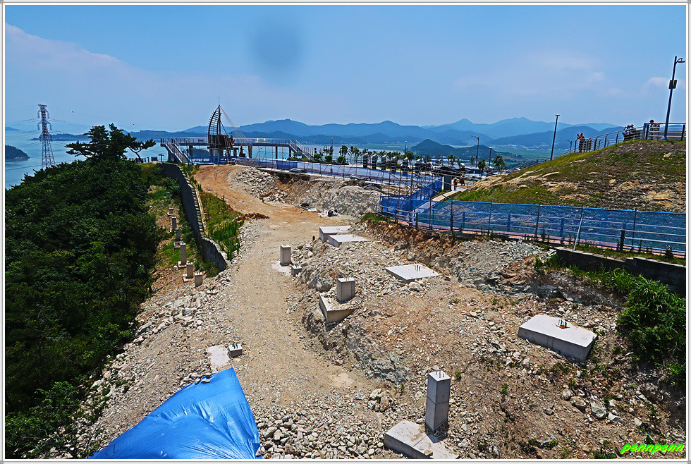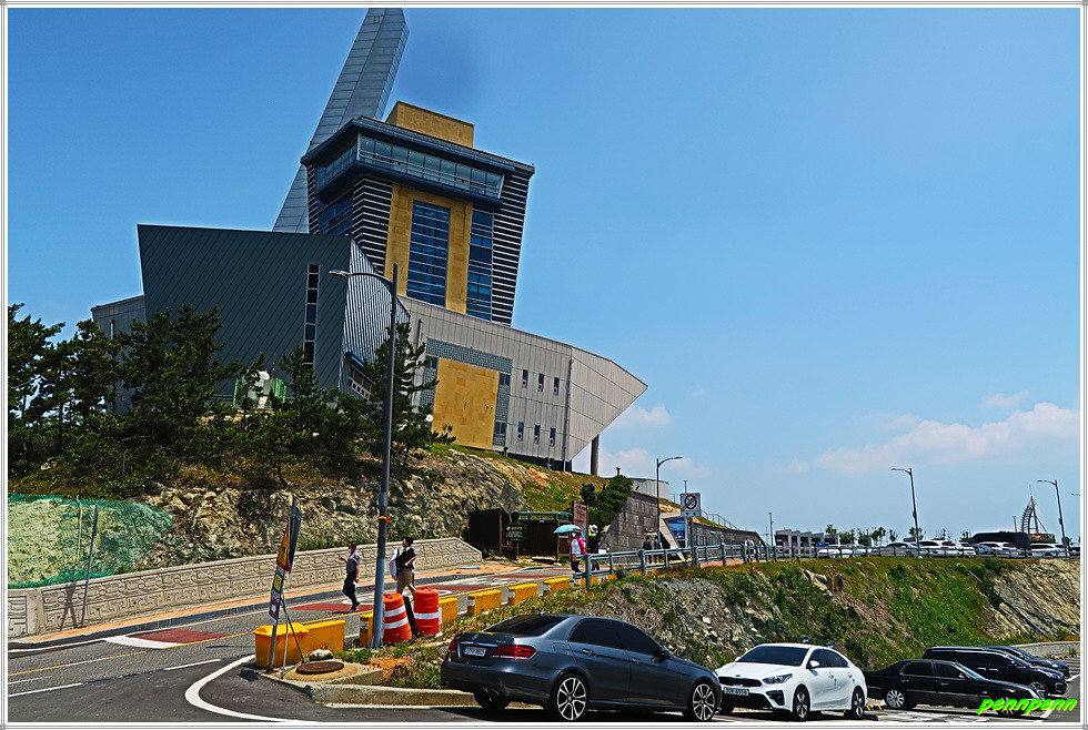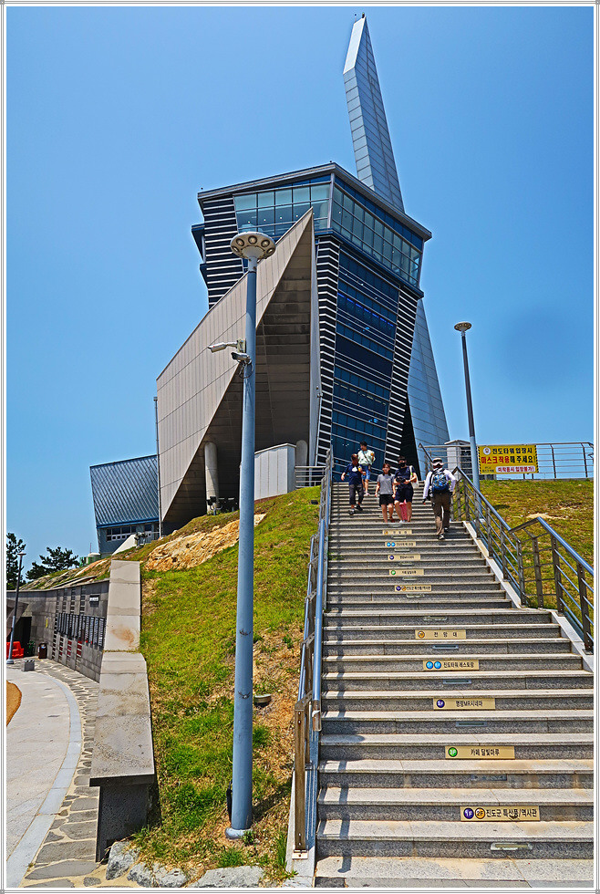주차장에서 진도타워 입구로 갑니다. 타워로 접근하는 돌계단을 오르면 바로 타워입니다. 쌍다리인 진도대교 옆에 운행 중인 명량해상케이블카를 한번 타보고 싶은 유혹을 느끼네요. 이곳에서 바라보는 울돌목의 바다와 맞은편 해남의 풍경은 그야말로 한 폭의 그림입니다.