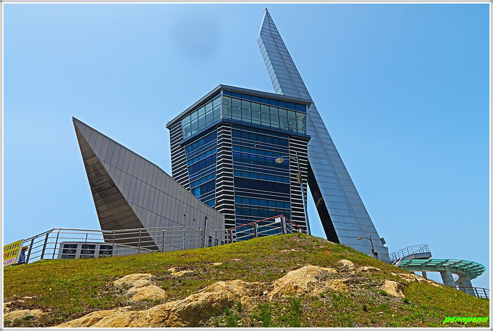 타워 1층에는 안내데스크와 진도군홍보관이 있고, 2층에는 진도군역사관 및 명량대첩체험관이 있으며 7층은 전망대입니다. 사실 이곳은 망금산 정상이어서 타워 7층 전망대에 오르지 않아도 주변의 멋진 풍경을 즐길 수 있습니다.