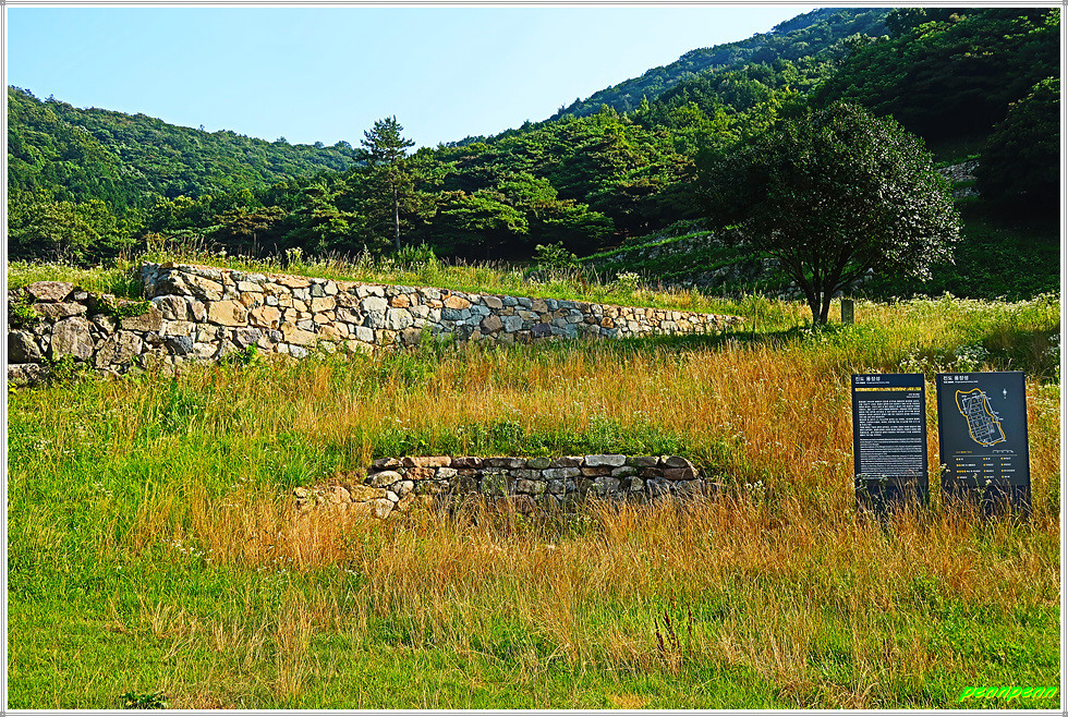 용장성의 길이는 군내면의 용장리, 세등리, 고군면의 도평리, 벽파리, 오류리를 잇는 산등성을 따라 총 12.75km이며 높이는 4m 내외입니다. 용장저수지에서 용장성 주차장(화장실 방면)으로 들어서면 안쪽에 용장산성 터가 있는데 이곳에 안내문, 표지석 등이 있습니다.