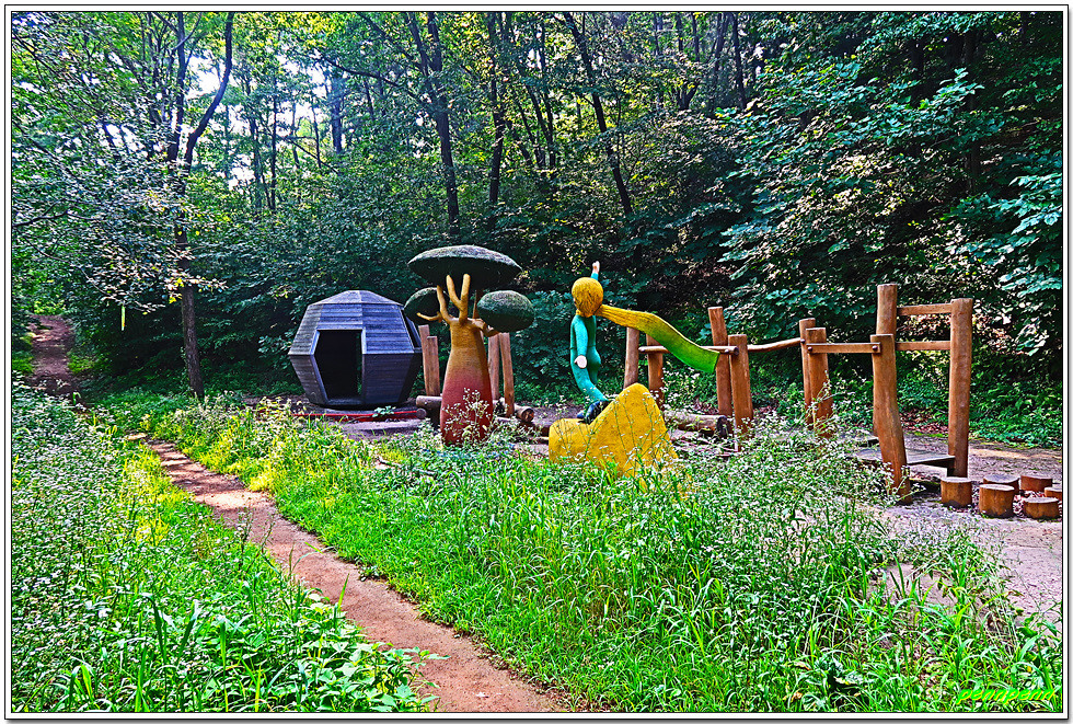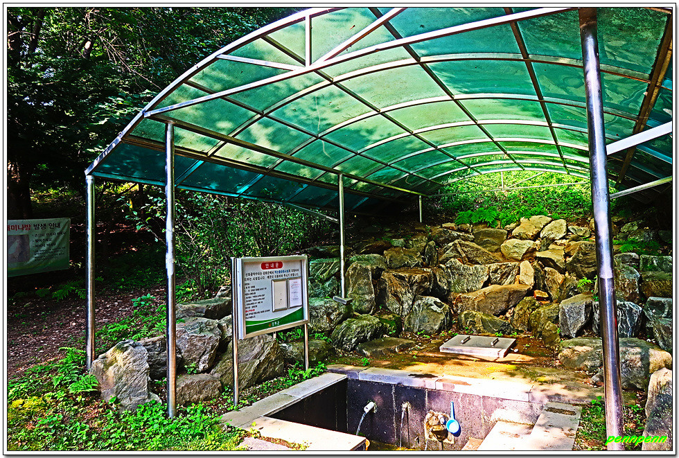 마을도로를 따라 가니 숲으로 연결되고 곧 이어 선화골약수터입니다. 근래 내린 비로 인해 물은 잘 나오지만 그간 수질검사를 하지 않아 음용을 금지하고 있더군요. 여기서 조금 더 가니 강화산성인데 복원되지 않은 모습입니다. 산성을 조금 오르니 삼거리 갈림길인데 산성을 따라 오르면 남산 정상이지만 나들길 이정표는 우측 아이의 숲 및 남산(청하동)약수터 방면으로 표시되어 있습니다. 아이의 숲 조형물을 지나면 남산청하동약수터입니다. 이곳에는 나들길 14코스인 “강화도령 첫사랑길”의 안내문도 보입니다.