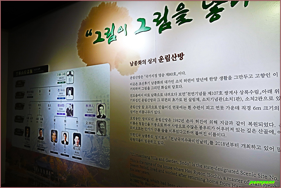 운림산방 주차장 쪽에는 남도전통미술관이 있으며, 바로 이웃에는 첨찰산 쌍계사가 있어 연계해 답사하기 좋습니다. 보배섬이라는 진도를 소개하는 관광안내도에 가장 먼저 등장하는 운림산방은 진도여행의 1번지라고 해도 과언이 아닐 것입니다.