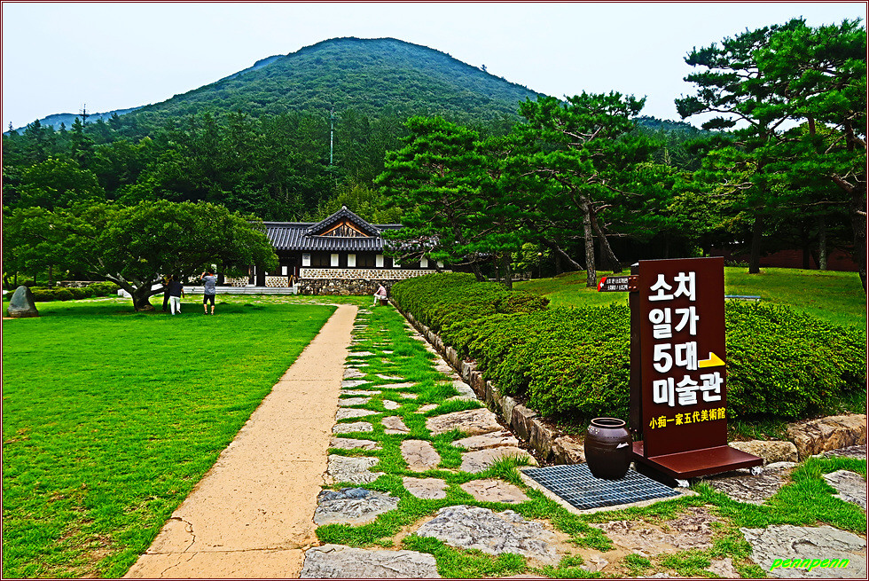 고택에서 우측으로 가면 소치1관(소치기념관)인데, 이곳은 소치 선생의 품격 있는 작품들과 예술인생, 교우관계, 명사들의 평가까지 한자리에서 감상하고 이해할 수 있는 전시공간입니다,(시간이 촉박해 내부를 살펴보지는 못했음). 넓은 경내에는 잘 자란 나무와 조각 작품처럼 보이는 자연석들이 놓여 있어 야외박물관을 연상시킵니다.