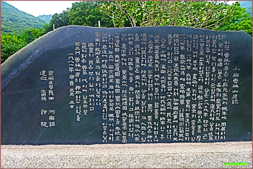 전남 진도군 의신면 사천리 소재 운림산방(雲林山房)은 조선 후기 남화의 대가인 소치 허련 선생(1808-1893)이 1856년부터 거처하면서 여생을 보냈던 화실입니다. 운림산방이라는 이름은 첨찰산 주위로 수많은 봉우리가 어우러져 있는 산골에 아침저녁으로 피어오르는 안개가 숲을 이루었다고 해서 붙여진 것으로 1982년 허련의 손자인 남농 허건이 복원해 세상에 알려지기 시작했습니다.
