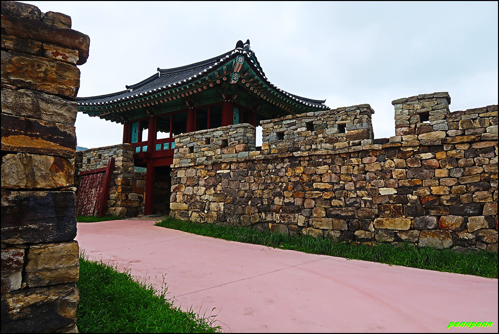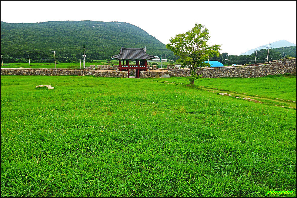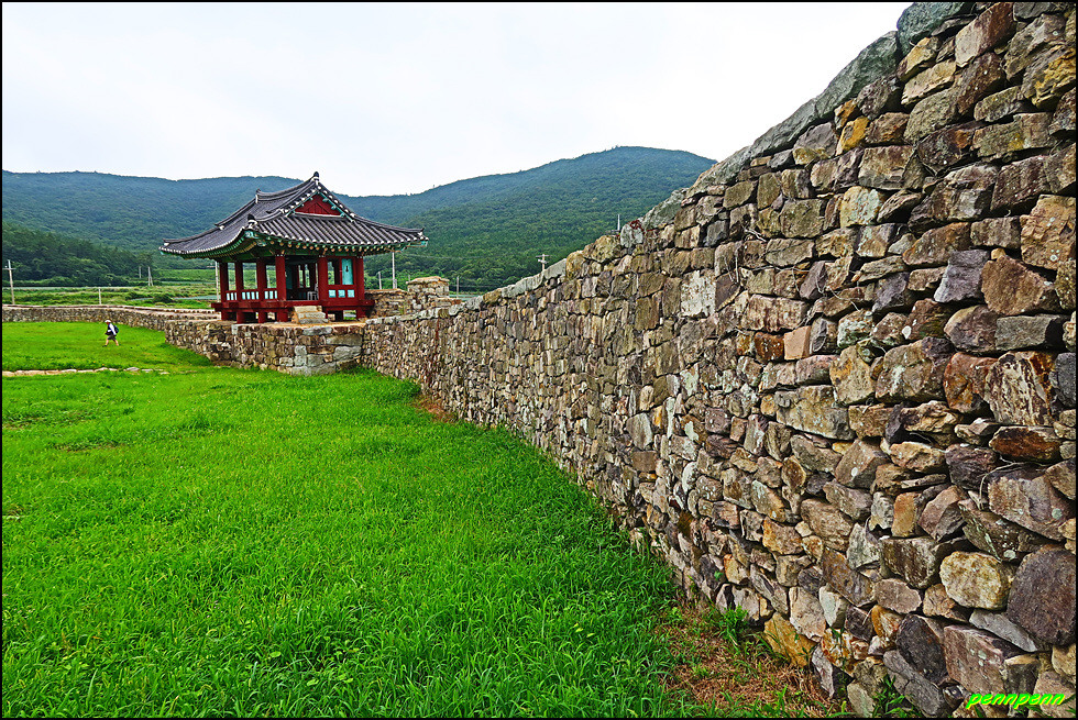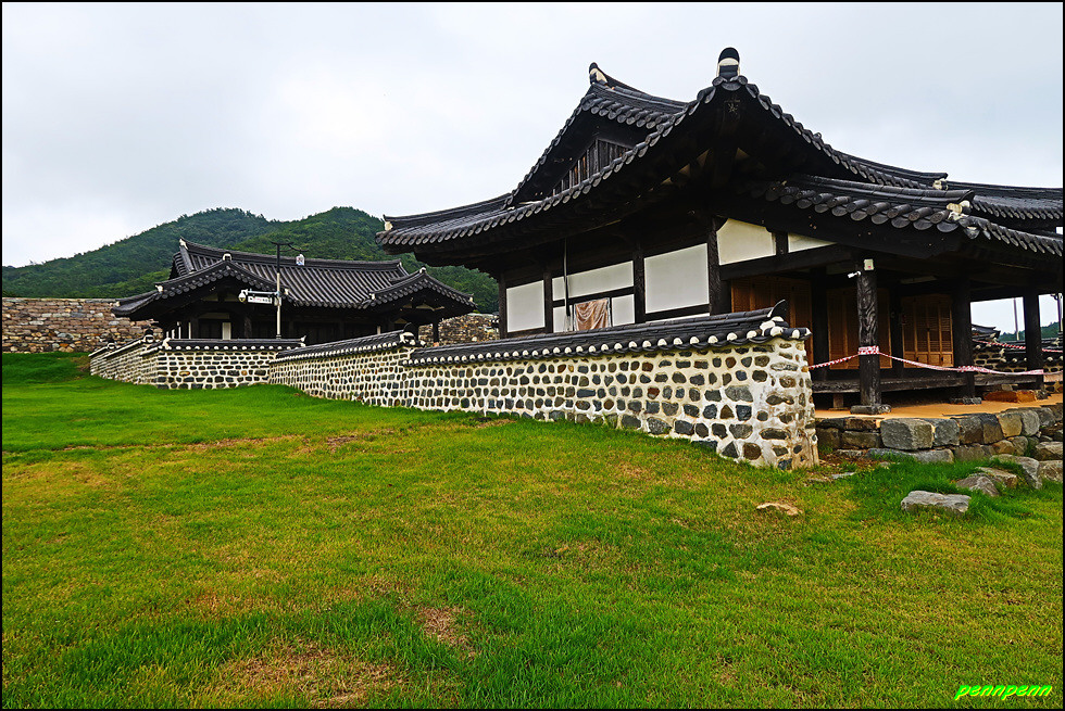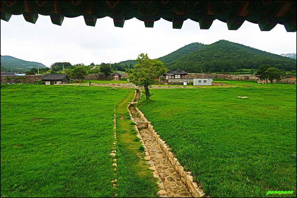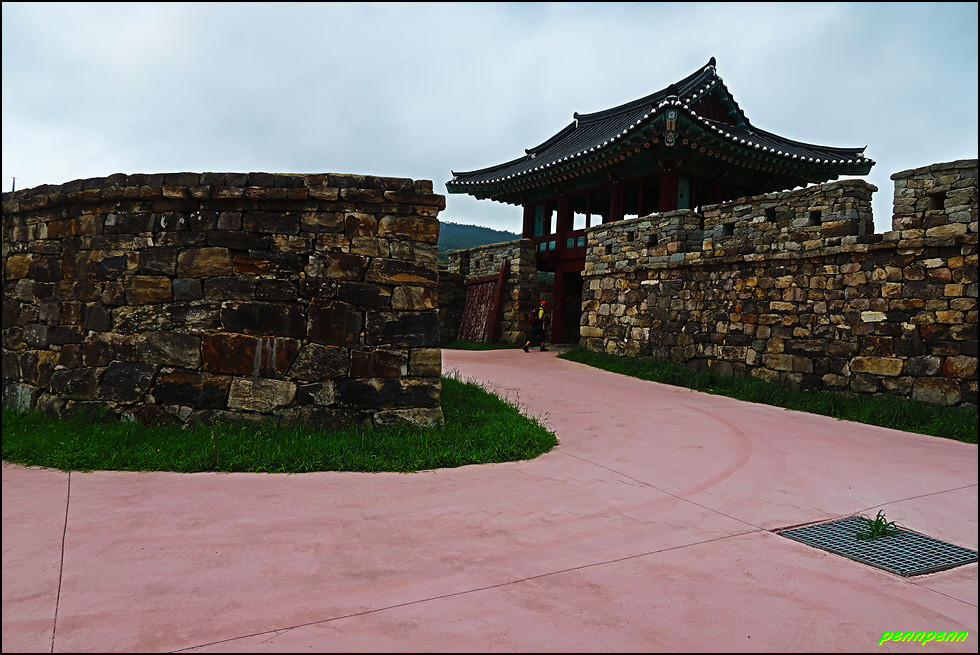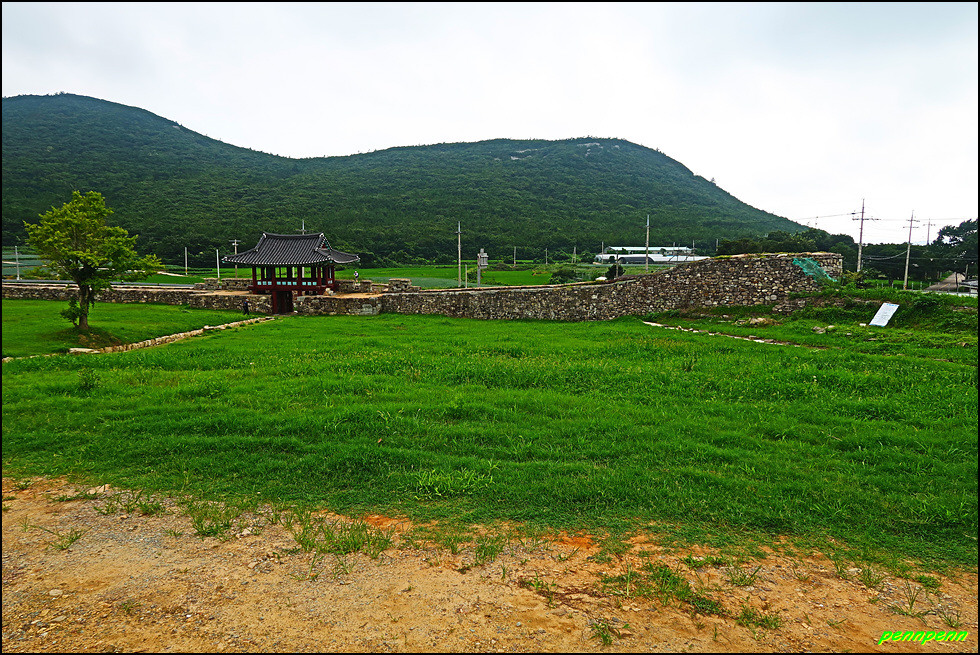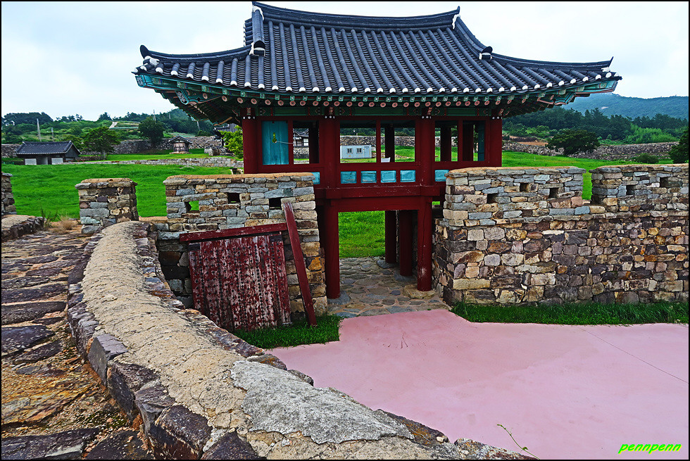성 안에는 민가가 수십 호 들어서 있고, 마을사람들은 이 성문을 통해 출입했습니다. 이곳에 관아와 객사를 복원했다는군요. 성 안으로 들어가 민가가 있는 곳으로 갑니다. 마을 한쪽에는 보수공사가 진행 중이어서 출입금지상태로군요. 민가 동쪽에는 정자가 있습니다.