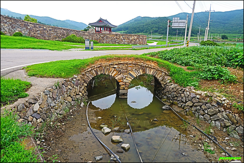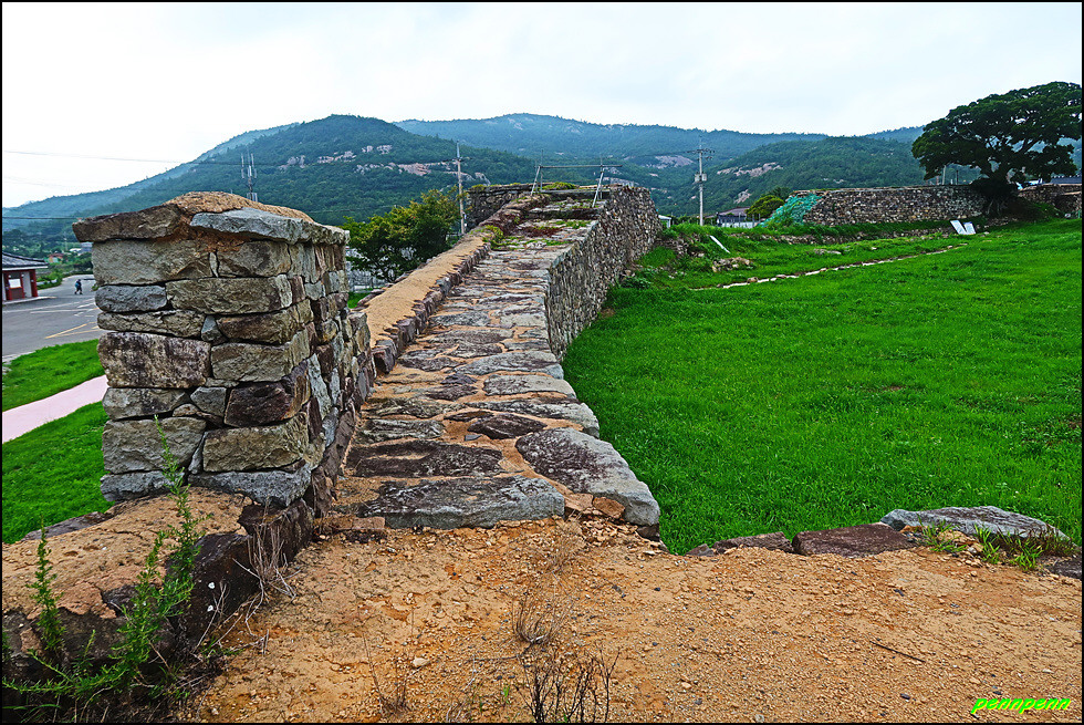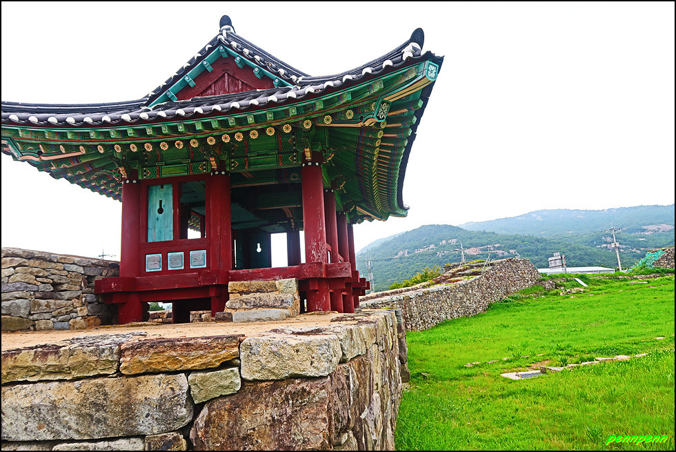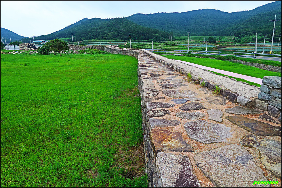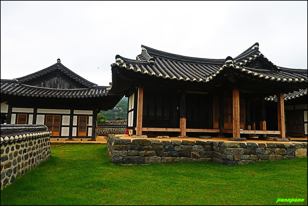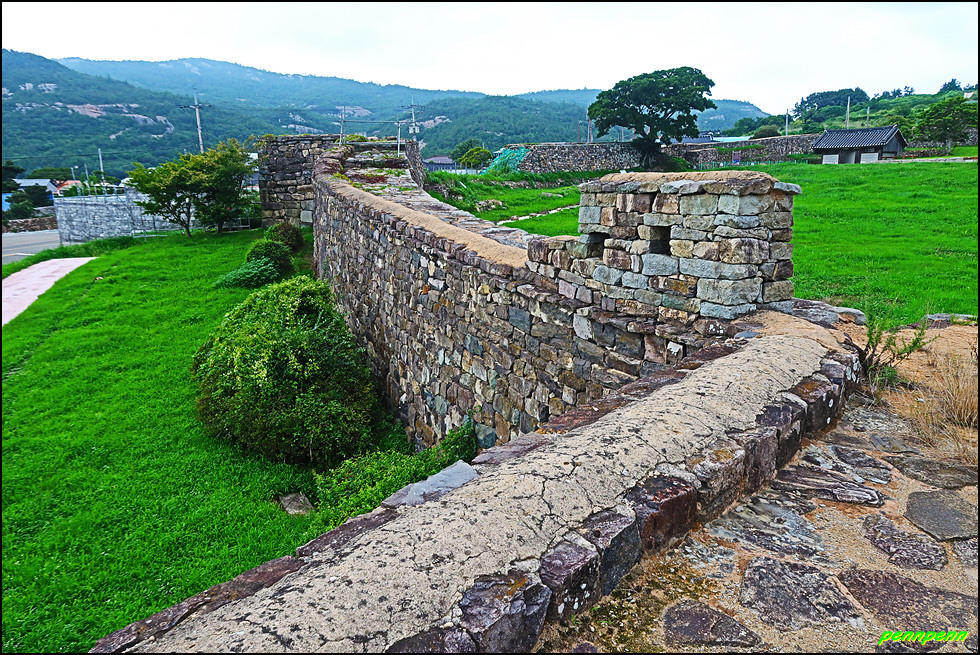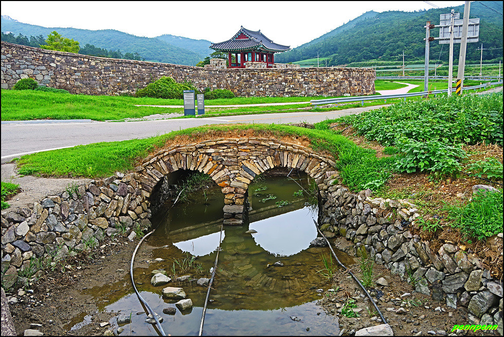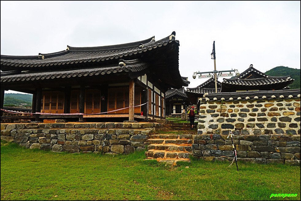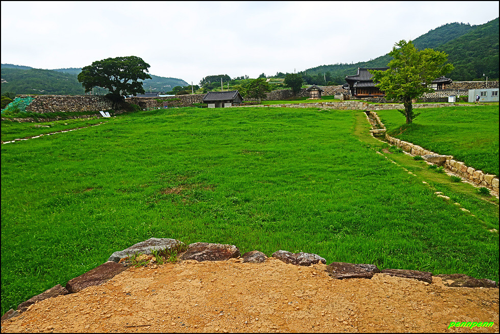 성 안에는 민가가 수십 호 들어서 있고, 마을사람들은 이 성문을 통해 출입했습니다. 이곳에 관아와 객사를 복원했다는군요. 성 안으로 들어가 민가가 있는 곳으로 갑니다. 마을 한쪽에는 보수공사가 진행 중이어서 출입금지상태로군요. 민가 동쪽에는 정자가 있습니다.