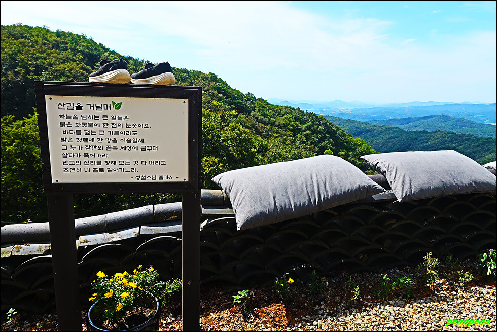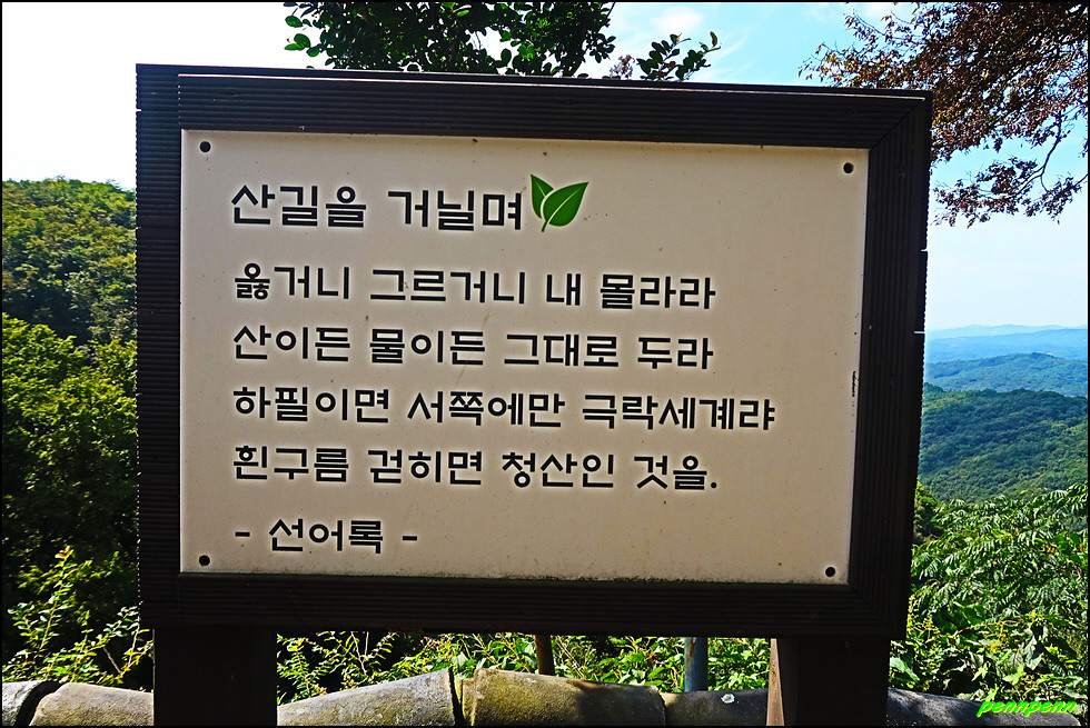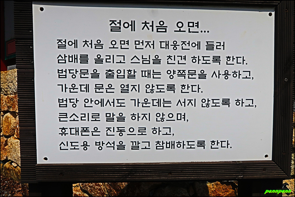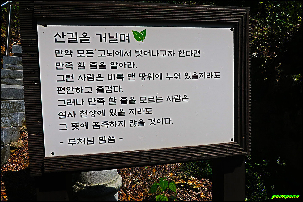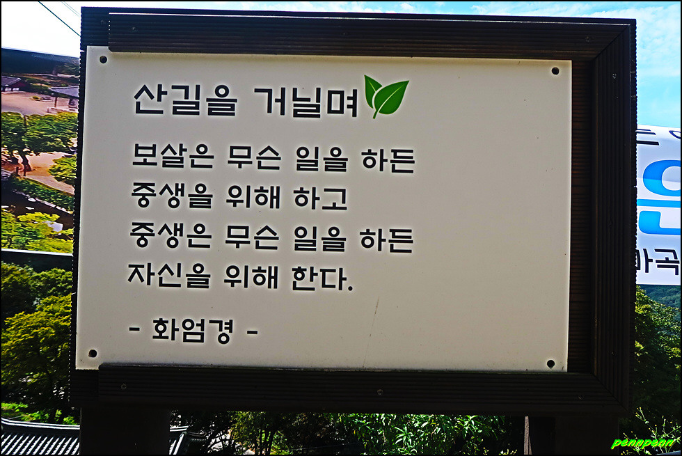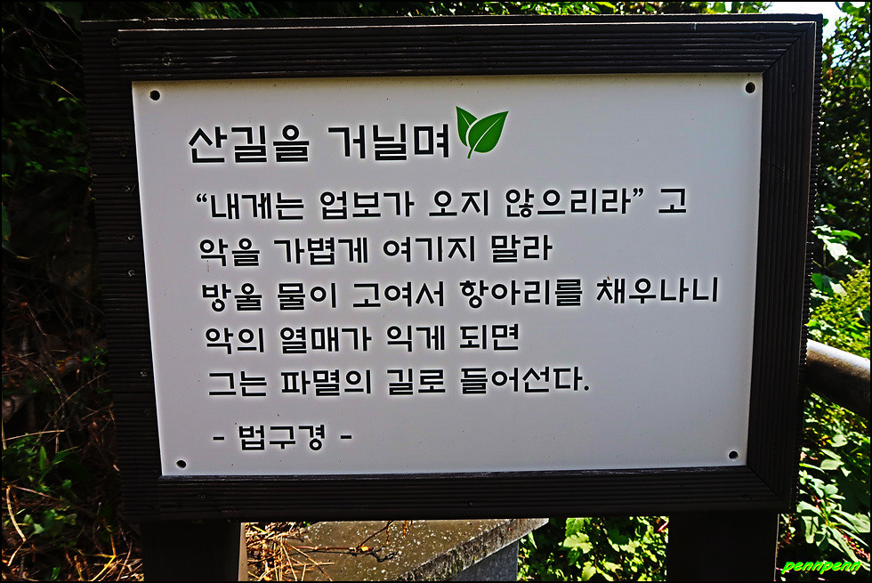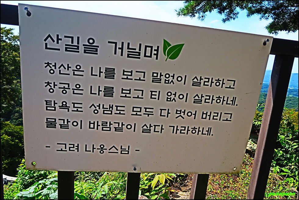 동혈사 경내에는 여러 군데 사람이 살아가는데 귀감이 될만한 명언(법구경, 부처님 말씀, 예불요령, 고승의 글씨 등)을 적어 걸어 놓았습니다. 이 중 산을 좋아하는 산꾼이라면 한번 정도 들어보았을 고려시대 나옹스님의 선시도 보이는군요.