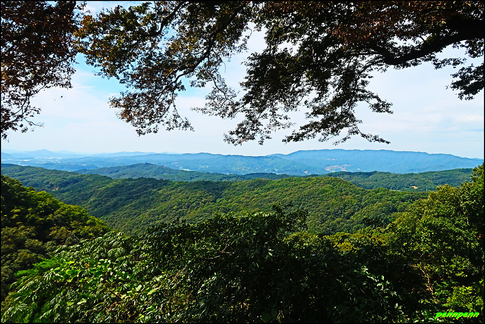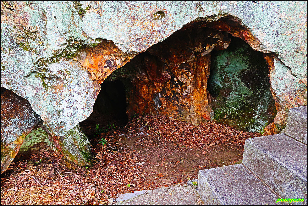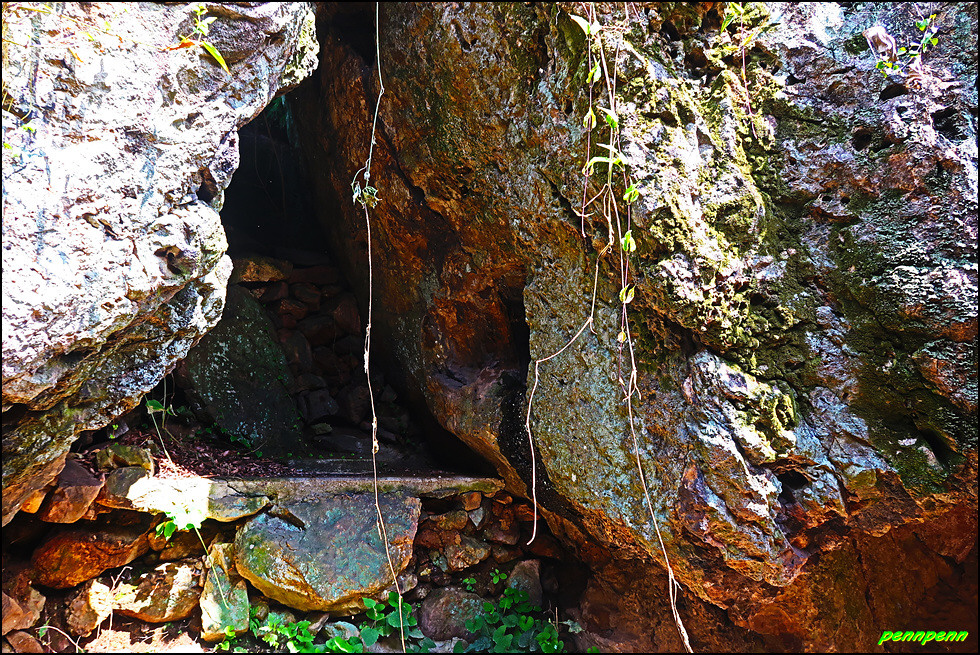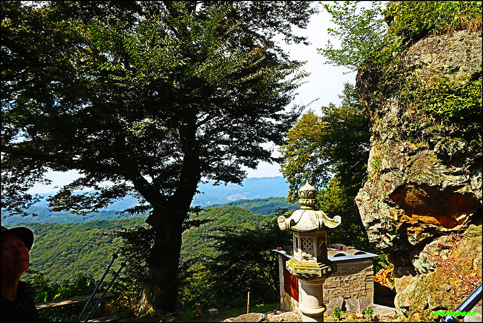 대웅전 앞에서 바라보는 멋진 조망은 동혈사가 얼마나 해발고도가 높은 지점에 세워졌는지 알 수 있으며, 대웅전 뒤편으로 들어가면 돌구멍(혈)이 보이는데 쌀바위로 추정됩니다. 동혈사에는 쌀바위와 호랑이의 전설이 전해오는데, 옛날 한 호랑이가 갑자기 스님 앞에 나타나 입을 쩍 벌리고 고통스러워했습니다. 스님이 살펴보니 호랑이의 입속에 짐승의 뼈가 가시가 되어 걸려 있어 이를 빼 주었고 호랑이는 생명의 은인인 스님에게 쌀이 나오는 바위를 알려주었답니다. 이후 가난한 이 절에 손님이 찾아오면 사람 수에 맞게 쌀이 나오게 되었으나 어느 스님이 많은 손님이 오자 바위의 입구를 크게 만들면서 쌀이 나오지 않았다고 합니다. 이 쌀바위는 법당 뒤편에 있었다고 하니 이 동혈이 쌀바위일 듯 합니다.