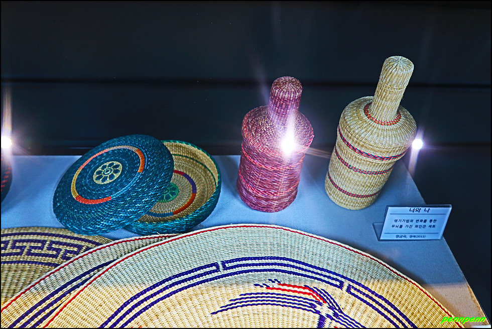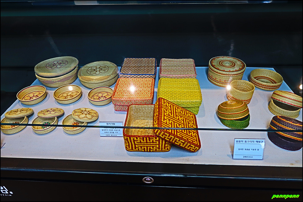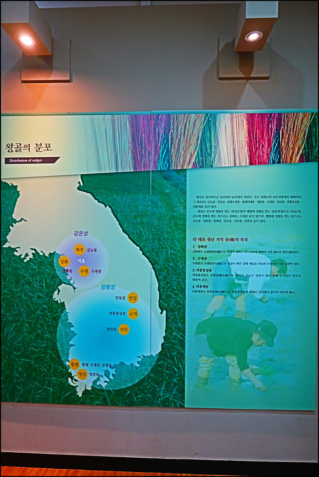 2층은 왕골공예품의 과거와 현재 그리고 미래의 다양한 왕골공예품의 변천과정을 한 눈에 볼 수 있는 상설전시관으로, 왕골의 재배와 가공, 왕골공예 제작과정 등 화문석 문화관련 전시관입니다.