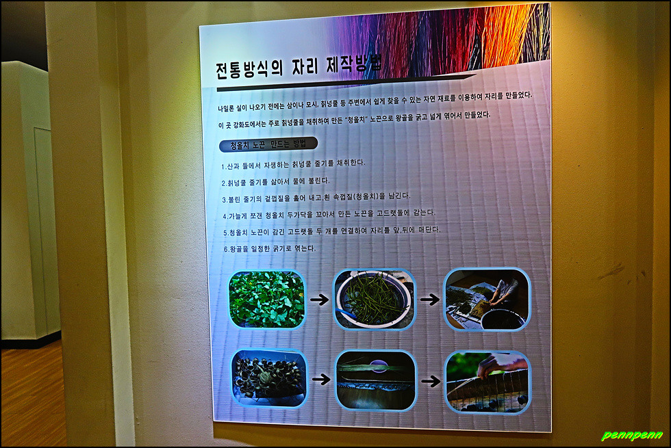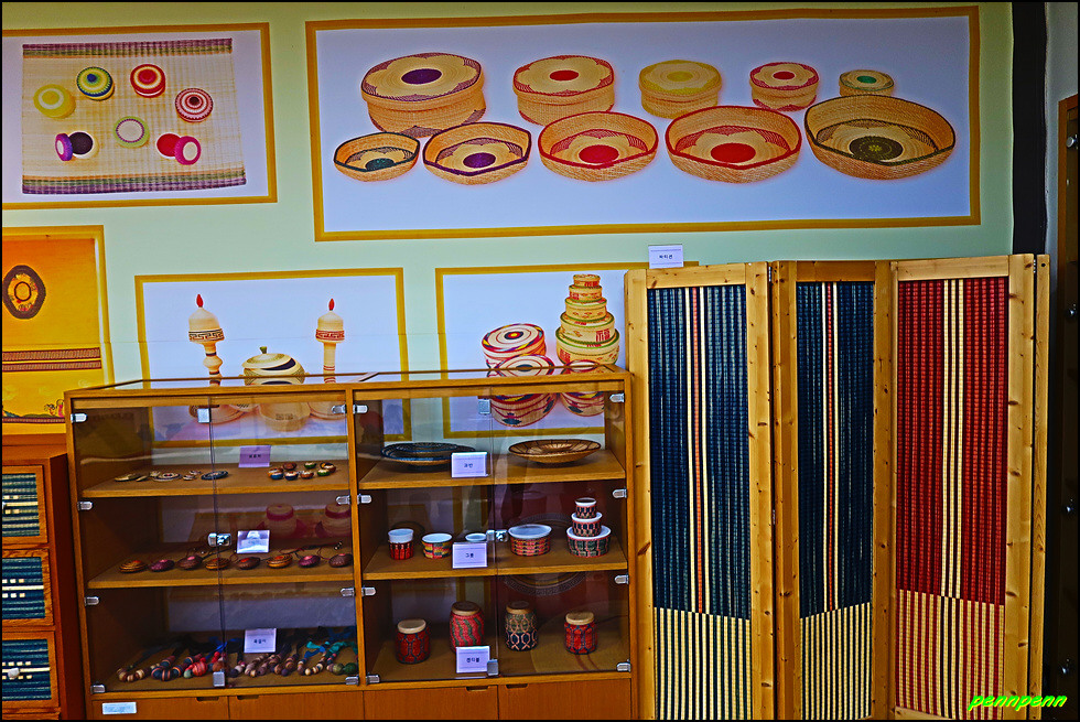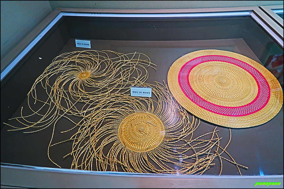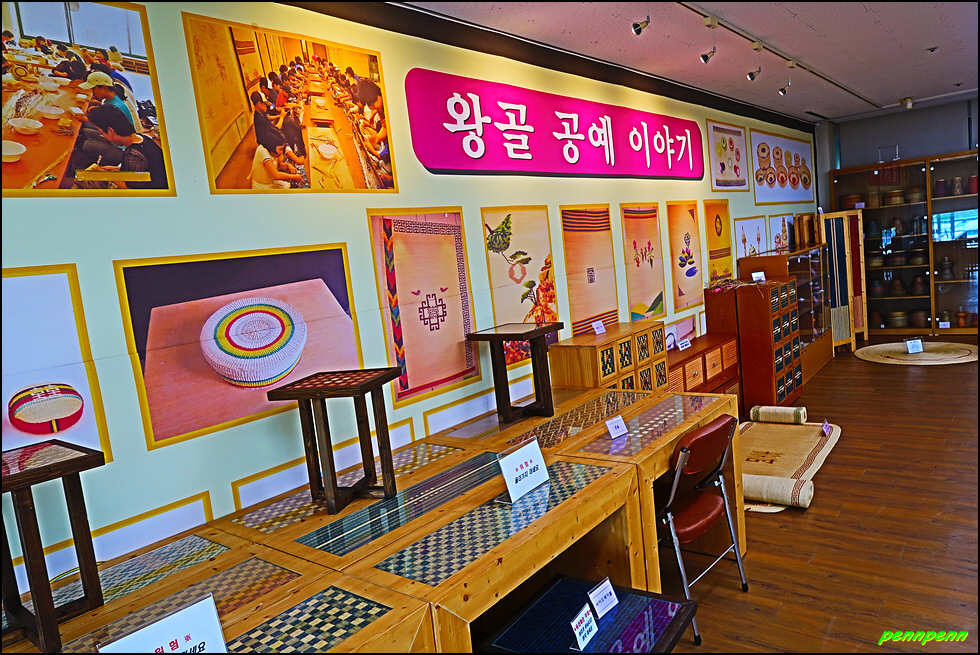 1층은 우수작품전시관 및 체험학습장으로서 현지 공예인들과 함께 화문석과 왕골소품 등을 직접 만드는 체험을 할 수 있습니다. 이곳 화문석은 우수한 품질 덕에 고려시대에는 송나라와 원나라에 수출되는 인기품목으로, 조선시대에는 청나라와 일본에 보내는 선사품으로 명성이 자자했습니다.