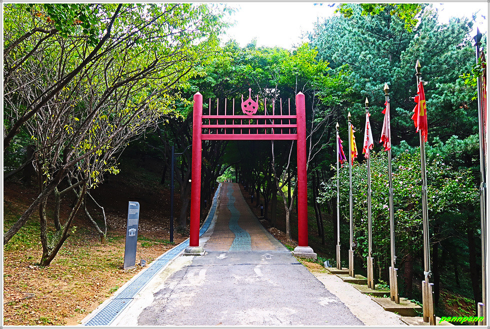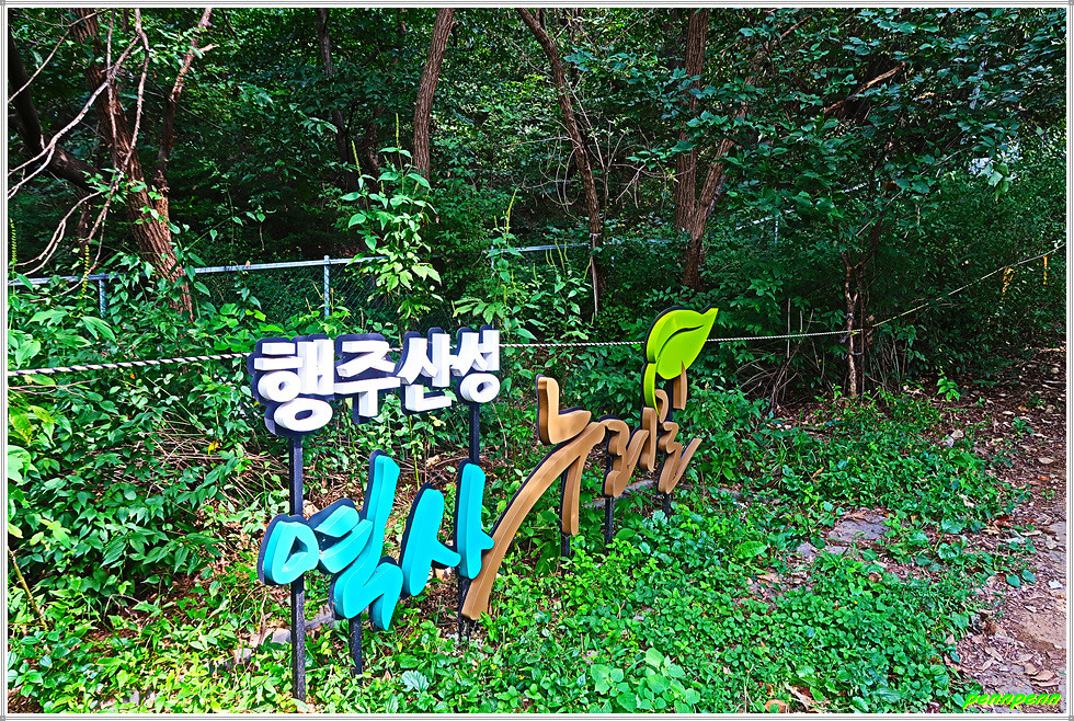 행주산성 주차장 좌측 귀퉁이에 평화누리길 4코스를 알리는 대문이 있는데 역사누리길은 이곳을 통과합니다. 행주산성 음식문화거리 입석간판이 있는 곳에서 좌측으로 들어가면 목적지인 고양인재교육원입니다. 이곳이 바로 행주산성 역사공원이지요. 역사누리길 안내문을 보면 답사에 1시간 30분 정도 소요된다고 하는데 필자는 2시간 20분이 걸렸습니다. 산성 정문에서 정상까지 오르는 길은 평탄하지만 정상에서 남쪽의 코스를 이용해 역사공원으로 가는 길은 오르내림이 심해 노약자는 상당히 힘이 들것입니다.