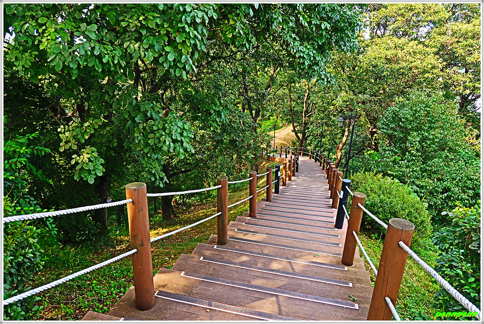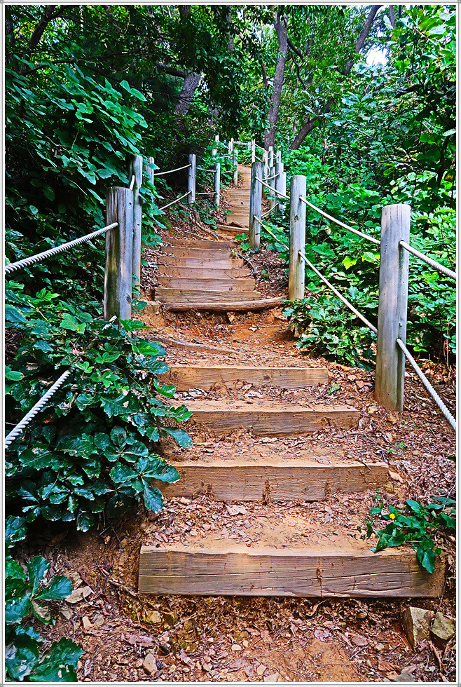 여기서 행주산성 방면으로 갑니다. 가파른 목재계단을 내려선 후 방화대교를 잠시 바라보다가 갈림길에서 좌측의 침목계단을 이용해 위쪽으로 오릅니다. 한참을 가다가 다시 내려선 후 또 다시 오르막길로 이어지더군요. 사실 행주산성이 있는 덕양산(125m)은 작은 야산에 불과하지만 막상 산 속으로 들어오니 제법 오르내림이 급하다는 걸 느끼게 됩니다.