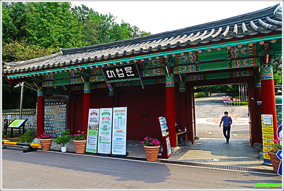 대첩기념관을 뒤로하면 좌측(정문에서 보면 우측)에 삼도삼문이 보입니다. 궁궐, 사당, 향교, 서원에서 볼 수 있는 삼도는 가운데 신도를 중심으로 양쪽에 참도를 둡니다. 신도는 사당에 모신 신이 다니는 곳이며, 일반인은 우측으로 들어가 좌측으로 나와야 합니다. 이 문을 통과하면 충장사가 있는데, 이는 권율장군의 영정을 모신 사당입니다.