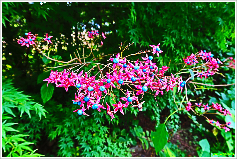 대추나무단지를 뒤로하고 발길을 재촉하면 보은군 회남면 법수리 우무동 버스정류장인데 아까 만났던 571번 지방도로입니다. 지나는 길목에 국사봉 등산안내도가 세워져 있군요. 어부동에서 좌측 두 번째 대추나무단지가 있는 곳은 답사를 생략하고 그냥 도로를 걷습니다. 오늘이 10월 초인데도 불구하고 낮 최고기온이 섭씨 27도까지 올라 상당히 무더운 날씨여서 다소나마 거리를 단축한 것입니다. 길섶에 있는 누리장나무의 열매를 만났는데 색상과 생긴 모습이 정말 환상적입니다.