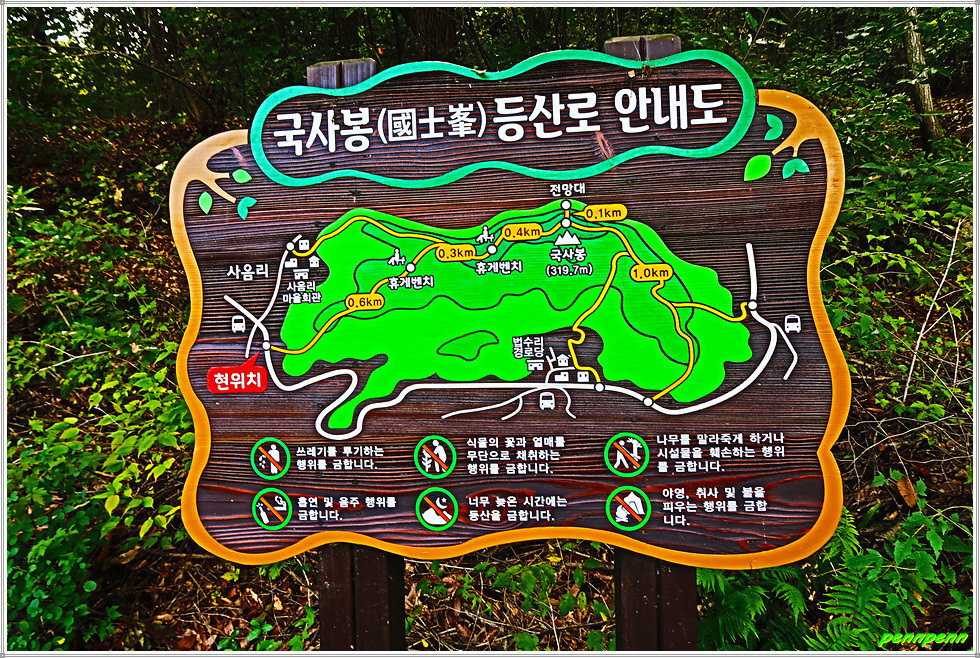 ▲ 코스 : 와정삼거리-꽃봉갈림길-개치고개-토방대-오동안골-대추나무단지-어부동-사음리-회남대교-양지공원가든-신곡마을-남대문교-남대문공원