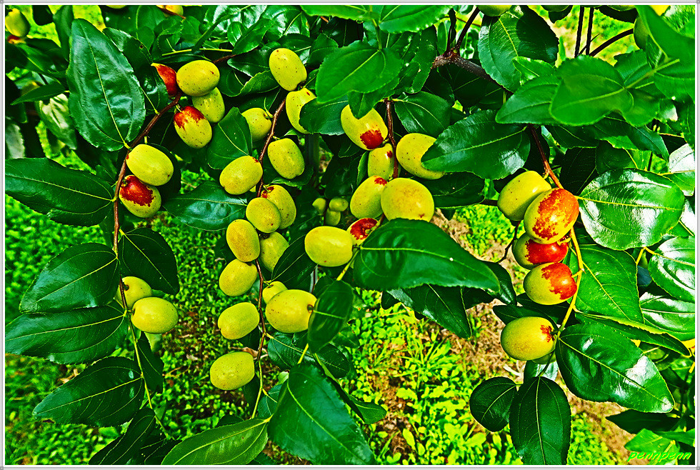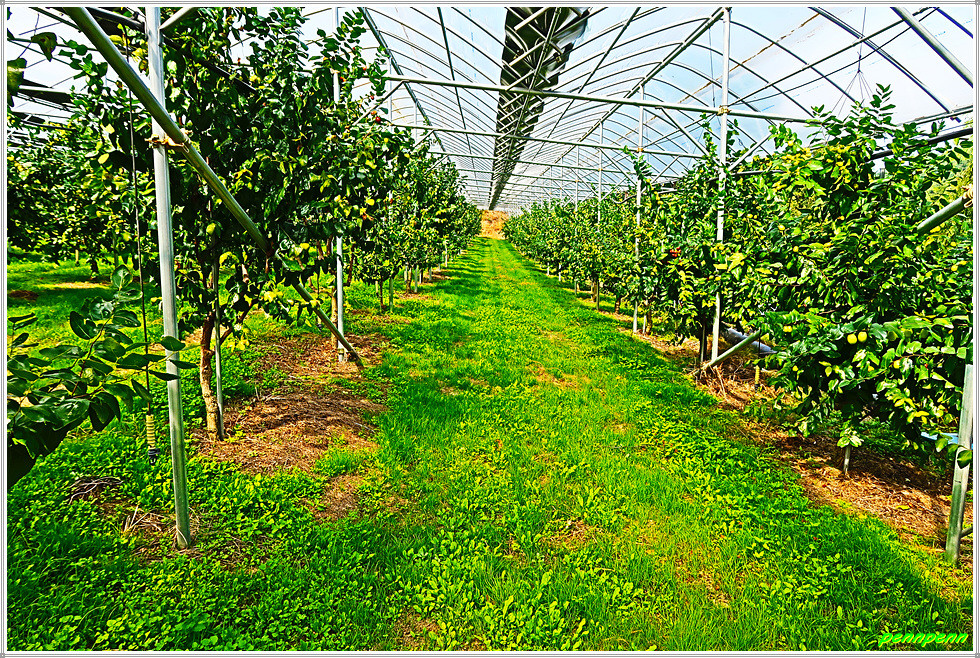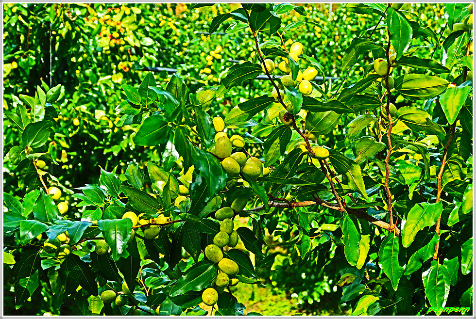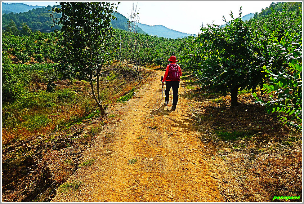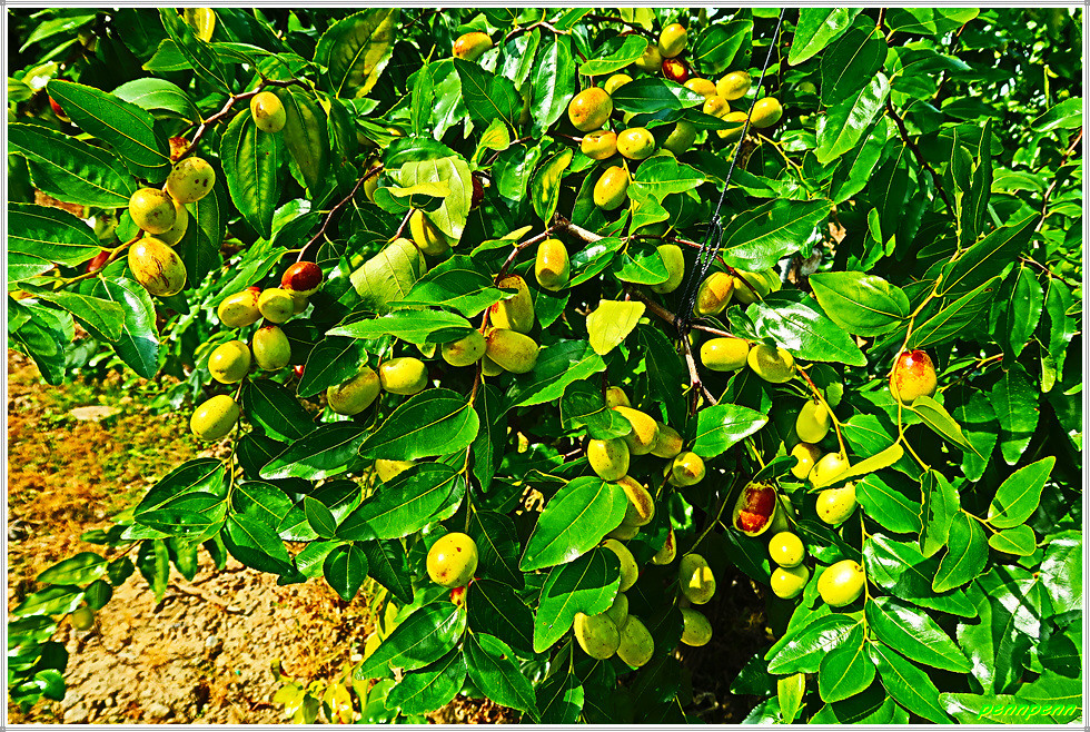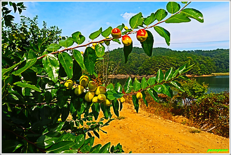 지붕이 있는 온실 내의 대추밭을 지나자 이번에는 야외에 조성된 대규모 대추나무밭이 여행자의 발걸음을 멈추게 합니다. 완만한 산비탈에 조성된 대추나무단지를 지나며 위로 오르니 인부들이 모여 점심식사를 하고 있습니다. 요즘 대추값이 매우 비싸다는데 이 정도의 대추농장이면 풍족한 생활을 영위할 수 있을 것 같습니다.