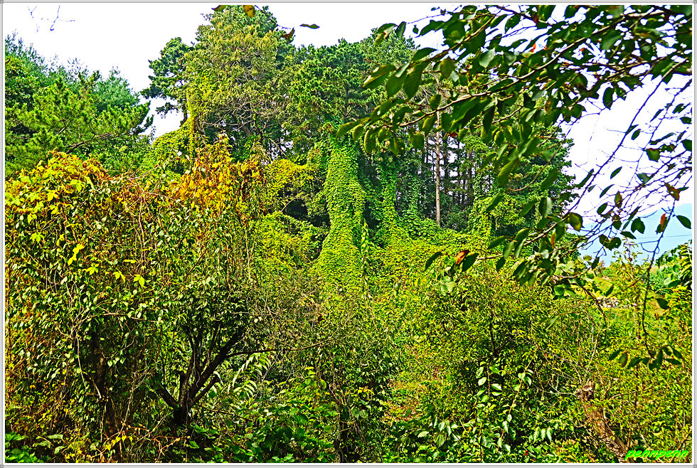 그런데 여기서부터 오백리길이 분명치 않습니다. 길은 희미한데 대전구간에서 자주 보던 그 흔한 리본도 전혀 보이지 않습니다. 가뭄에 콩 나듯 부착되어 있는 대청호 오백리길 안내 문만으로는 이런 숲속을 헤쳐 나가기가 정말 어렵습니다. 이곳은 행정구역상 충북 보은군 회남면인데 대전에서는 오백리길 관리를 잘 하지만 보은군의 경우 인력이 부족한지 아니면 관심이 없는지 관리가 전혀 안되어 있어 앞으로 이 지역의 답사가 걱정됩니다. 아무튼 어렵사리 길을 제대로 찾아 숲속을 빠져 나오니 드디어 기다리던 대추나무단지입니다.