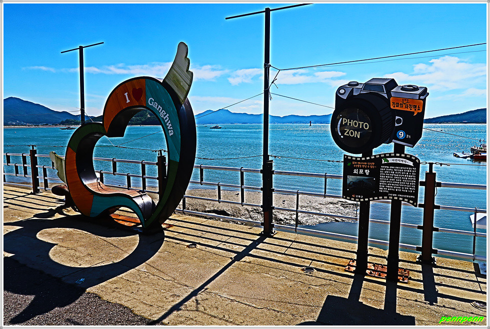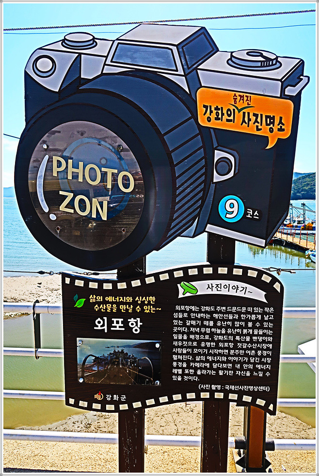 외포항 부두를 따라 걸으며 외포항 젓갈수산물 직판장 주차장에 오면 외포항 조형물과 하트조형물이 있습니다. 인천강화경찰서 강화파출소 앞에는 강화나들길 도장함과 서해랑길 강화 102코스 지도가 있습니다. 강화나들길 16코스는 북쪽 창후리 선착장에서 이곳 외포항까지남행길이지만 서해랑길 강화 102코스는 반대로 남쪽에서 북쪽으로 가는 길입니다.
