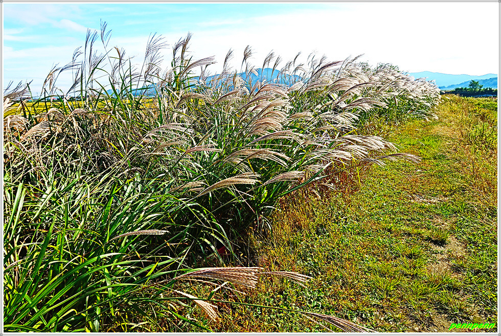 망월돈대에서 빛을 발하는 은빛억새를 보면서 걷습니다. 이 코스를 답사하며 망월평야를 검색해 보았지만 답을 얻지 못했는데 길섶에서 만난 “망월리마을의 역사와 유래”에서 귀중한 정보를 얻게 되었습니다. 오랜 세월 간척사업을 통해 조성된 망월평야는 강화 간척평야에 설립된 마을 중 가장 크고 오래된 마을로 마을이 벌판가운데 있어 달을 가장 먼저 바라본다고 해 망월동이라고 불렀으며, 전체 면적 130만평의 65%가 벼농사를 하는 전형적인 농촌마을입니다.