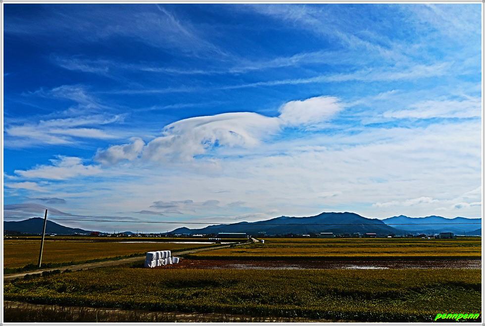 두 번째 나들길 아취형 출입문을 통과합니다. 그림으로 나타낸 서해황금들녘길의 안내문을 뒤로하고 발걸음을 옮기는데 청명한 하늘을 수놓은 새하얀 구름은 그야말로 한 폭의 그림입니다. 이젠 그냥 기념물로만 남은 군부대 해안초소를 지나자 갯벌에는 마치 붉은 색 양탄자를 깔아놓은 듯한 풍경이 눈길을 사로잡습니다. 바로 갯벌에서 자란다는 칠면초입니다. 이 칠면초 군락지는 칠면조와 같이 계절에 따라 색이 변한다고 해서 이름 붙여졌다는군요.
