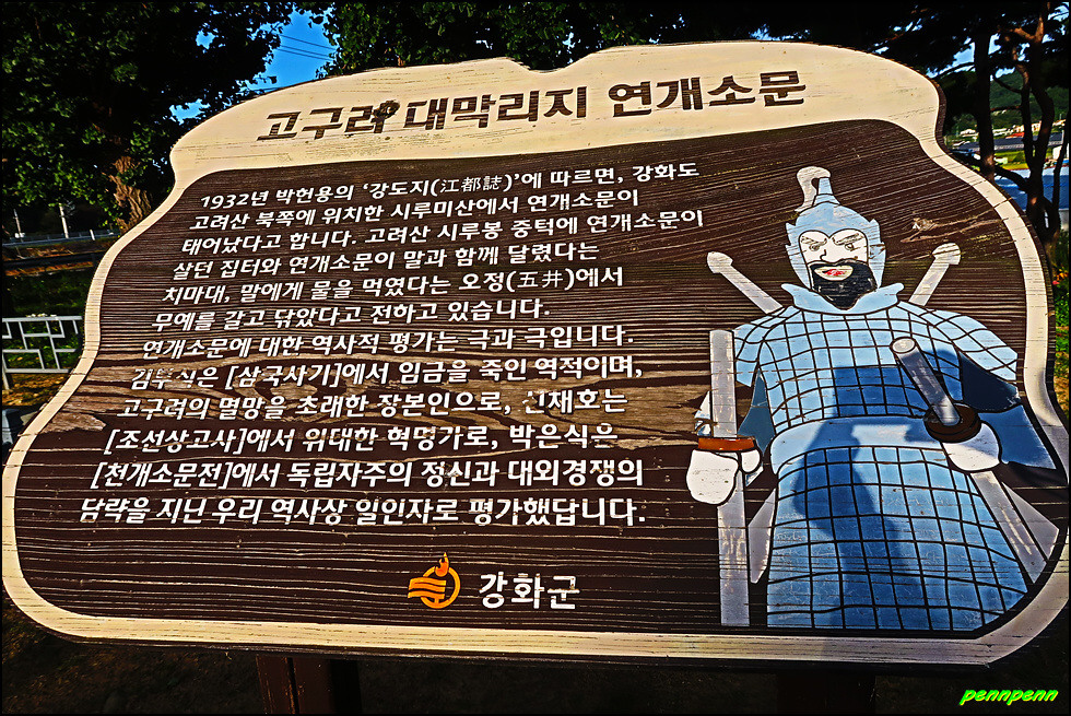 17코스의 들머리는 강화군 하점면 부근리 소재 강화지석묘입니다. 강화지석묘는 탁자식고인돌 중에서 가장 크고 늠름해 교과서에 대표적인 고인돌로 소개되는 문화재로서 덮개돌의 무게만도 53톤에 달한다니 그 규모를 짐작할 수 있지요. 강화역사박물관 진입로인 고인돌관광안내소에는 17코스 지도와 나들길 도장함이 있는데 이곳이 출발점입니다. 여기서 48번 국도변으로 가면 우측에 고구려장군 연개소문 유적비가 세워져 있습니다.