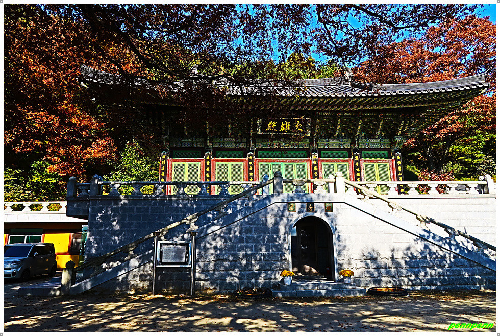 낙조대에서 삼성각을 경유해 밑으로 내려서면 적석사 본당인 대웅전이 있는데요. 강화군 내가면 고천리 소재 적석사는 고구려 장수왕 4년 인도승려 천축조사가 고려산에서 오색 연꽃을 날려 그 연꽃이 떨어진 곳마다 색색의 청련사, 백련사, 흑련사, 황련사와 적련사를 창건하였으며, 적석사는 그 중 적(赤)색 연꽃이 떨어진 곳에 절을 지어 적련사(赤蓮寺)라 하였다가 후에 적석사로 개명한 천년고찰입니다.