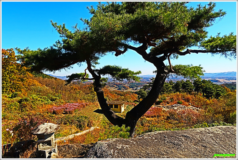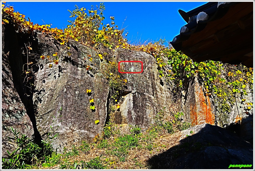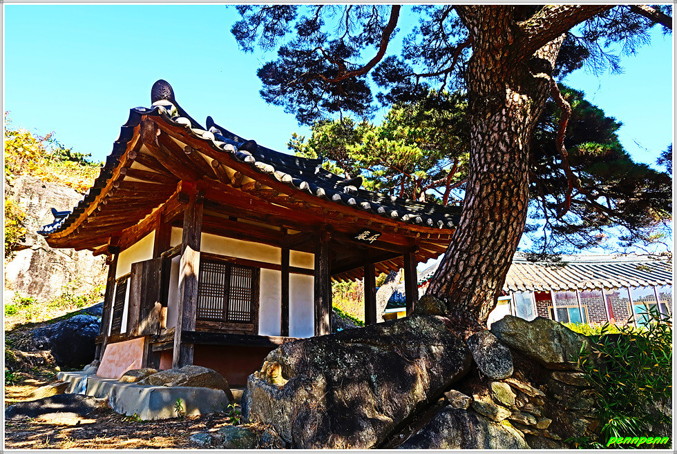 오백나한 옆의 정자는 유명한 봉서리 병암정인데, 병암정은 안동김씨 병암 김현규(1765-1842)가 후손들의 학문 증진을 위해 1832년 지은정자이며, 주변에 큰 바위가 병풍처럼 둘러져 있어 병암이라고 지었다고 기록되어 있고, 정자는 정면2칸 측면1칸 반 규모의 팔작기와집으로서 규모는 작지만 온돌방과 마루를 둔 독특한 배치법을 사용한 것이 특징이라고 합니다. 병암정이 있는 12폭 병풍바위에는 “병암(屛巖)”이라는 글씨가 새겨져 있고, 그 옆에는 수령 440년이 지난 명품 보호수 소나무가 둥지를 틀고 있어 매우 아름다운 풍광을 자랑합니다.