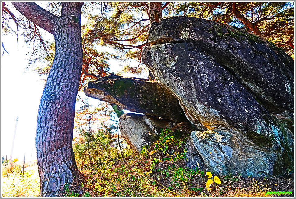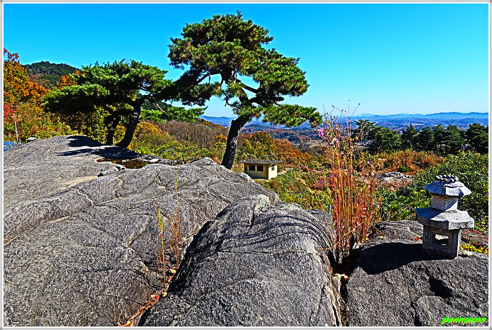 특히 사찰의 마당 가장자리에 있는 바당바위처럼 큰 바위는 봉천대로 이곳의 해돋이는 문경에서도 일출명소로 소문이 날 만큼 멋진 곳입니다. 봉천대에는 암반에 뿌리를 내린 두 그루의 형제소나무가 사이좋게 자라고 있습니다.