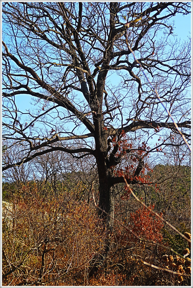 기와집을 돌아 숲으로 진입해 잠시 후 빠져 나오면 고씨 영모사 유지회에서 세운 사당이 보이네요. 지나는 길목에는 수령 300년이 넘은 보호수 물푸레나무가 있고, 좌측으로 돌아가니 이번에는 수령 300년이 지난 상수리나무가 있는데, 물푸레나무와 상수리나무가 보호수로 지정된 것은 처음 봅니다.