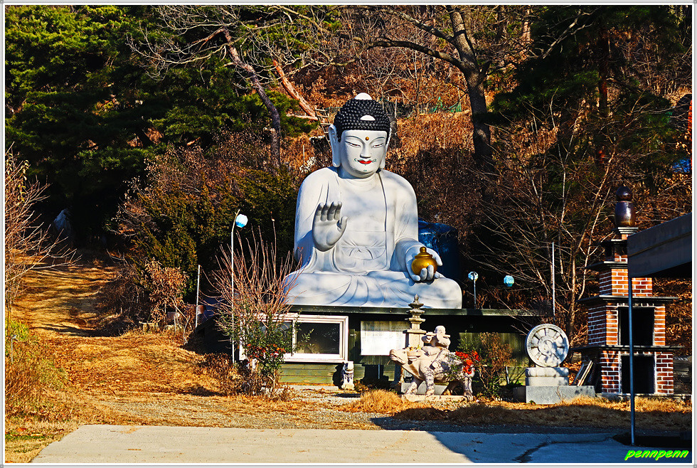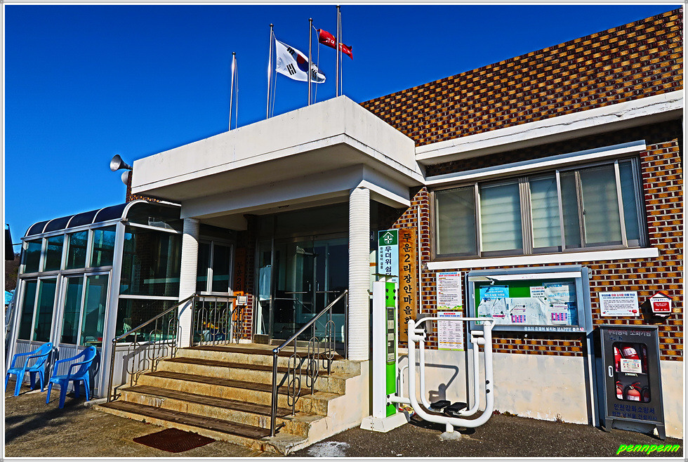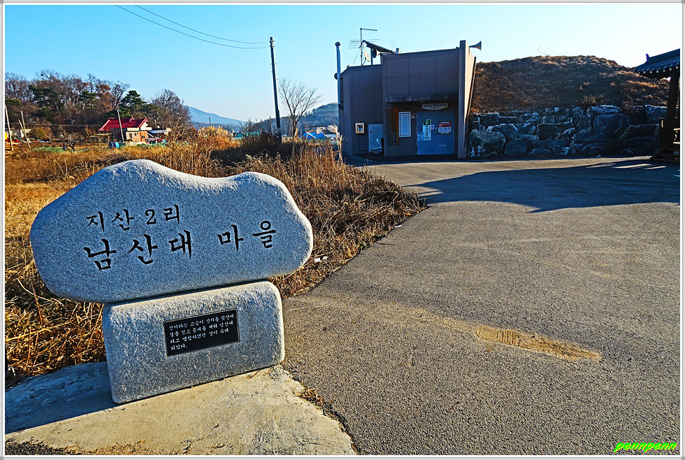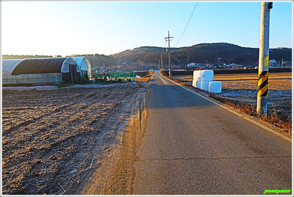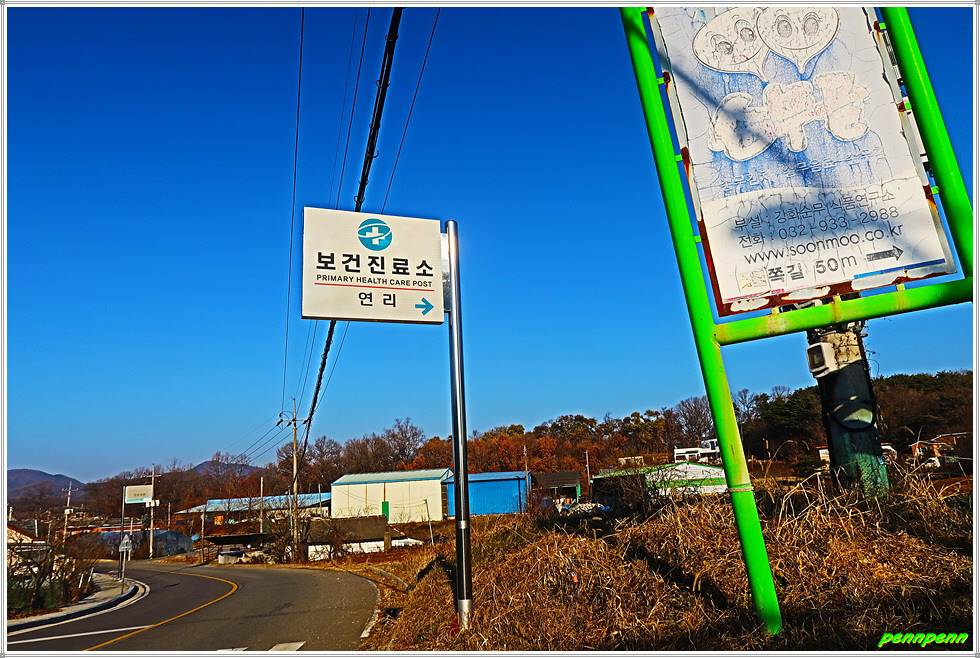 누군가 정성을 들려 쌓은 돌탑군을 뒤로하면 산수유가 열매를 맺고 있군요. 눈이 부실만큼 빨간 백량금의 열매가 여행자의 발길을 사로잡습니다. 두운2리마을회관 옆길을 따라가면서 두운2리 장안마을회관을 지나갑니다. 비슷한 이름의 마을회관이 둘이로군요. 길을 가면서 좌측 언덕을 바라보니 그야말로 그림 같은 녹색의 전원주택이 보이는데 이곳에는 동화 속 인물이 살고 있을 것만 같습니다.