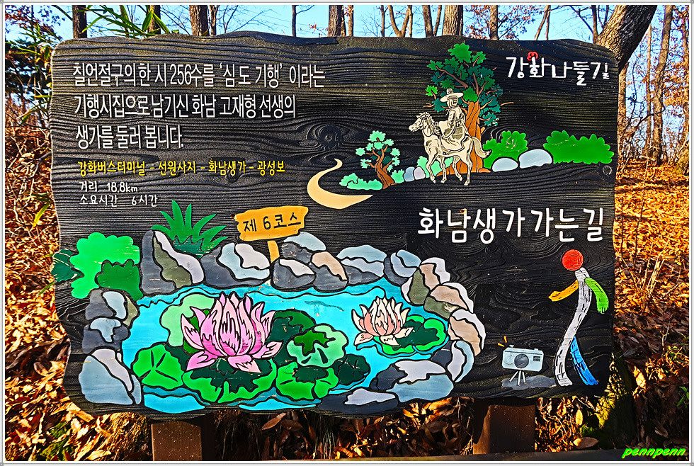 여기서 잠시 강화군의 무성의를 지적하고자 합니다. 강화나들길 6코스의 이름이 “화남생가가는 길”인데 지도로 표기된 곳 주변에 화남생가 관련 안내문이나 이정표 하나 없다는 게 정말 이해할 수 없습니다. 이럴 바에는 6코스의 이름을 “선원사지 가는 길”로 바꾸는 게 좋을 것입니다. 여기서 강화군과 백과사전 등에서 밝힌 화남선생이 어떤 분인지 다시한편 살펴보겠습니다.