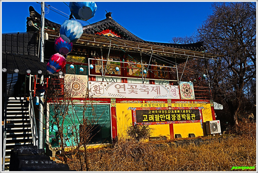 선원사지 동남쪽에는 선원사가 있는데 옥외에는 대형 좌불상이 있고 사찰의 전각 하나와 한옥 1채가 전부입니다. 그런데 이곳에는 고려팔만대장경 박물관과 선원사복원추진위원회가 있고 과거 연꽃축제를 개최했을 당시의 안내문이 그대로 남아 있네요.