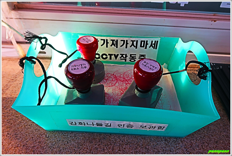 광성보 관리사무실 앞에 6코스 완보 인증도장함이 있지요. 오늘 17.5km를 걷는데 약 5시간이 소요되었습니다. 실제의 거리는 홈페이지거리(18.8km) 및 중간 이정표 거리(15km)와도 차이가 나서 보완할 필요가 있어 보입니다. 또한 나들길 앞부분에 리본이 거의 없어 길을 찾느라 애를 먹었습니다. 무엇보다도 이미 지적했듯이 호남생가의 위치에 대한 정확한 이정표와 안내가 없어 이 길을 걸으며 실망한 분들이 많을 것이므로 이 점은 꼭 개선되기를 희망합니다.
