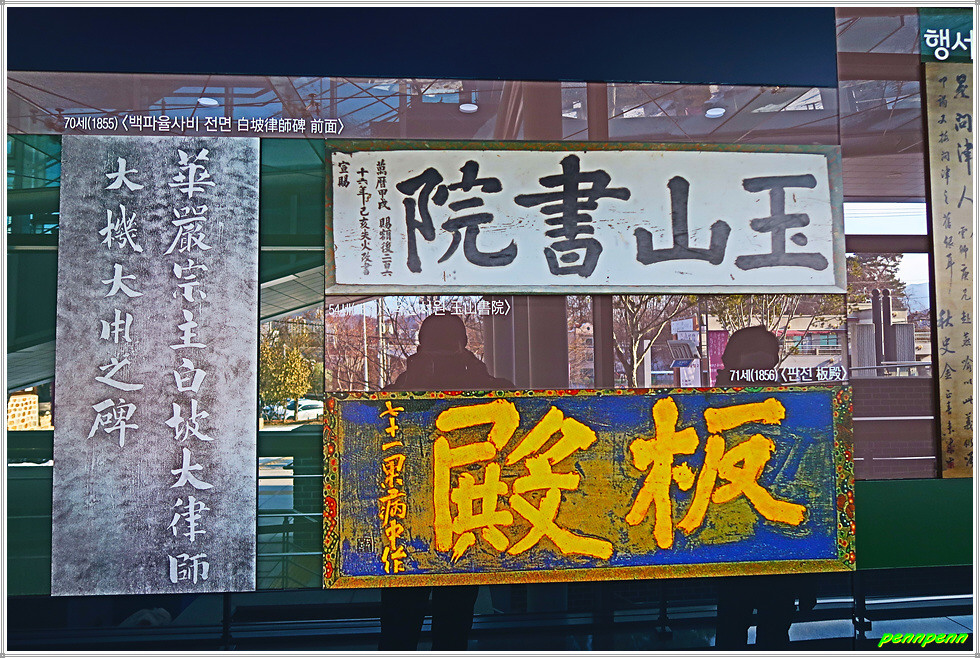 경주 안강의 옥산서원 현판은 추사가 54세 때인 1839년 필적으로 “송곳으로 철판을 꿰뚫는 힘으로 쓴 글씨”라는 평을 들을 정도로 굳센 필치가 돋보이는 작품입니다.