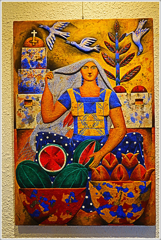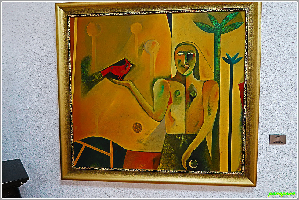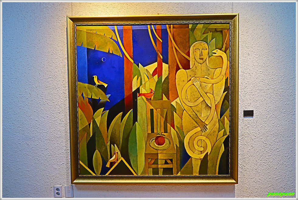 마리아 가요(Maria Gallo 1945~2020, 니카라과)는 가족, 여성, 아이들, 꽃과 같은 주제에 관심을 가지게 되었으며, 작품 속 인물들은 몽환적인 분위기를 풍기는데, 이는 현실에 존재하지 않는 피부색인 녹색, 푸른색 등을 혼합한 색을 섞어 사용했기 때문입니다. 가요의 작품은 마치 천경자의 작품을 보는 듯하네요(펜펜 생각).