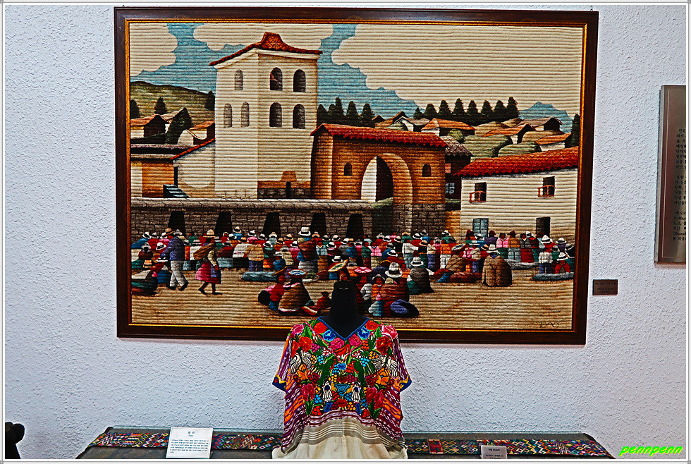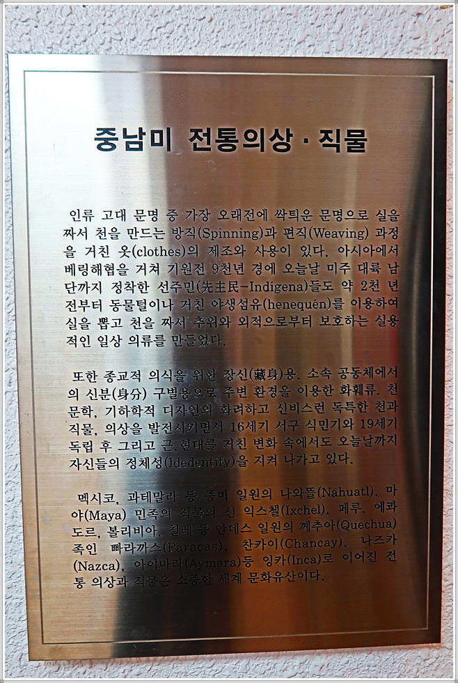 지하로 내려가면 전통의상 직물전시실인데, 이곳에도 그림이 다수 있습니다. 그러나 무엇보다도 중남미국가의 전통의상과 직물은 섬세하면서도 화려해서 눈을 땔 수 없을 지경입니다.