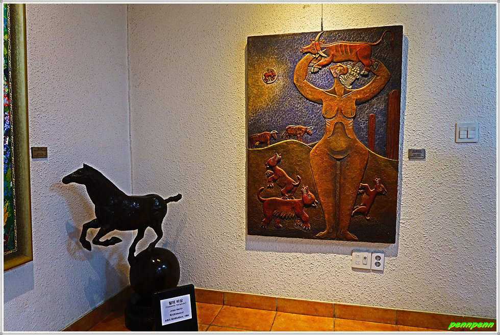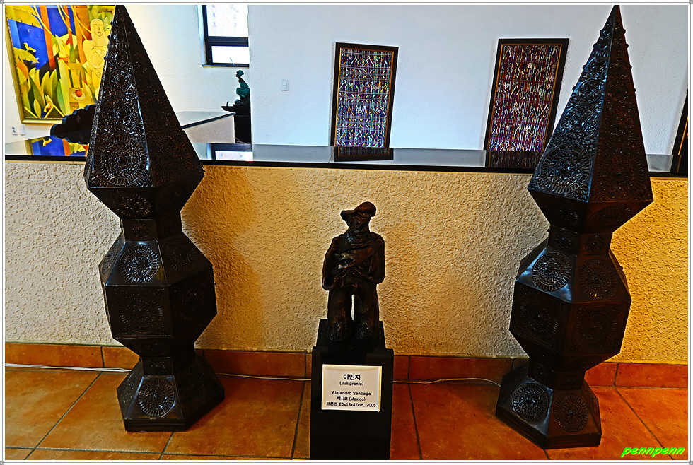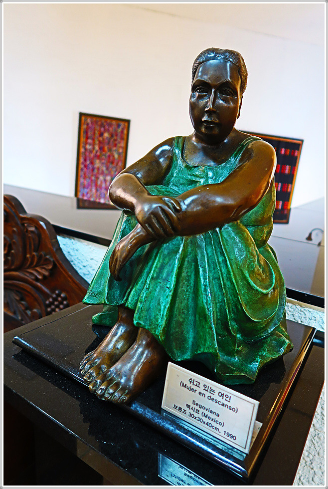 미술관 뜰에도 몇 점의 조각작품이 전시되어 있는데 문을 열고 안으로 들어서면 기념품 판매점입니다. 이곳에는 라틴아메리카를 기념할 만한 제품이 많지만 사진촬영이 금지되어 실물을 보여주지 못해 아쉽습니다.