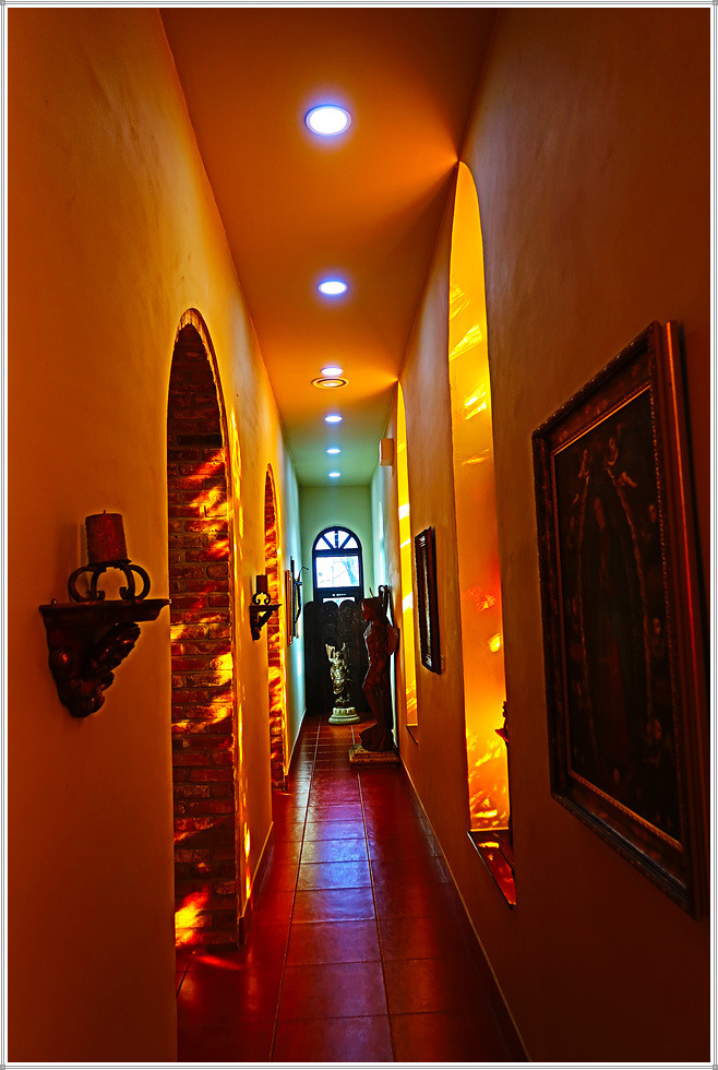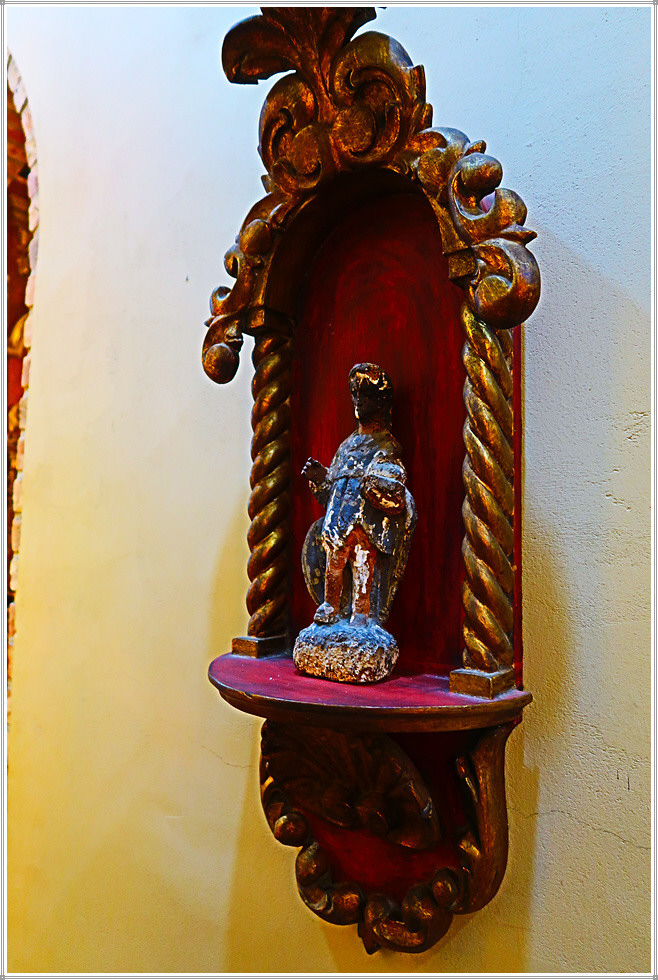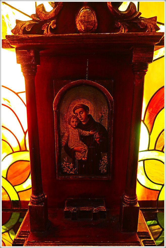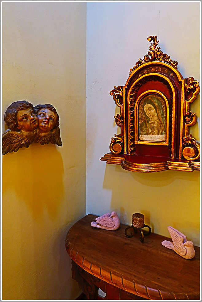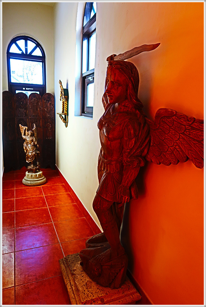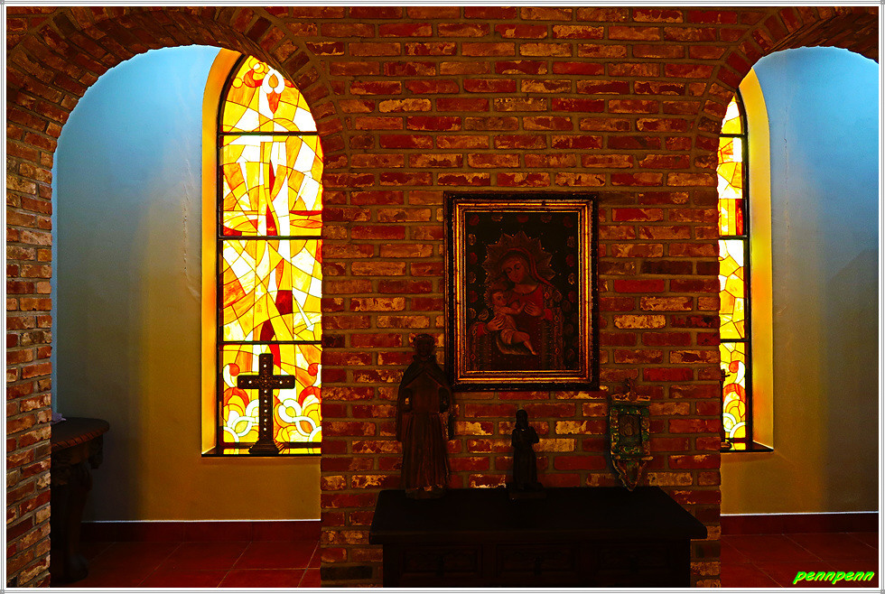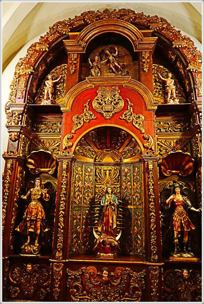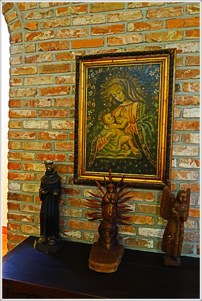 중남미 성당의 내부 주제단(Retablo 主祭壇)에는 유럽에서 선호한 그림(성화)보다 성모상과 성미카엘, 성가브리엘 조각, 기타 천사상과 조각 등이 만들어지고 천장과 벽면에는 프레스코, 복도는 스테인드글라스, 십자가, 종교화 등을 장식했습니다.(자료/현지 안내문)