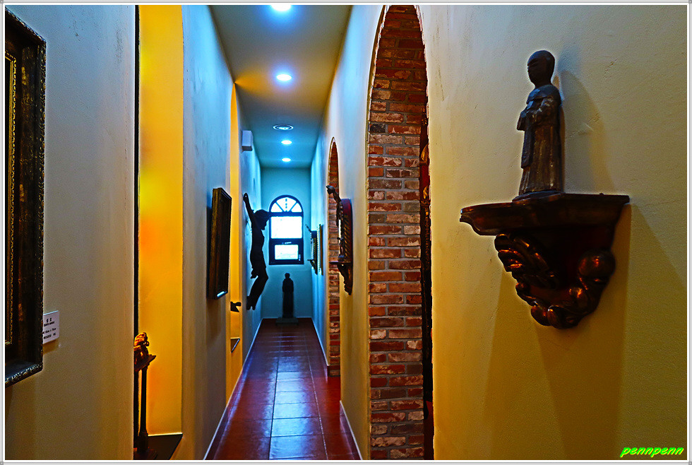 종교전시관 중앙에 설치되어있는 레따블로(Retablo)제단(목조각, 채색 450x650cm)은 화려한 색채의 특징을 가진 17세기 바로크 미술의 영향을 받아 만들어진 것으로, 로마 바티칸 교황이 사용하는 일상가구와 바티칸 성당의 미술작품을 제작해온 멕시코 바로크 미술대가 아구스띤 빠라(Agustin Parra)의 작품입니다. 중남미는 서구의 식민지가 되면서 유럽의 가톨릭 문화가 전해졌으며 식민시대에 바로크 양식이 전해지며 한층 더 화려한 라틴 바로크 양식을 선보이게 됩니다.