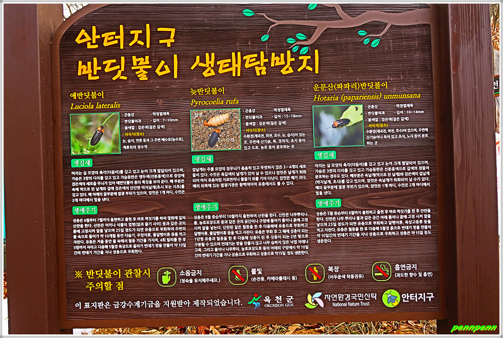 바위솔 이정표를 뒤로하면 안터지구 반딧불이 생태탐방지 안내문이 있네요. 대청호 안터지구 생태관광 조성은 이곳이 개똥벌레라고 불리는 반딧불이의 서식지로 생태관광지역 활성화를 통한 일자리 창출과 대청호 환경보전, 그리고 농촌체험 활성화를 도모하기 위한 것이라고 합니다.