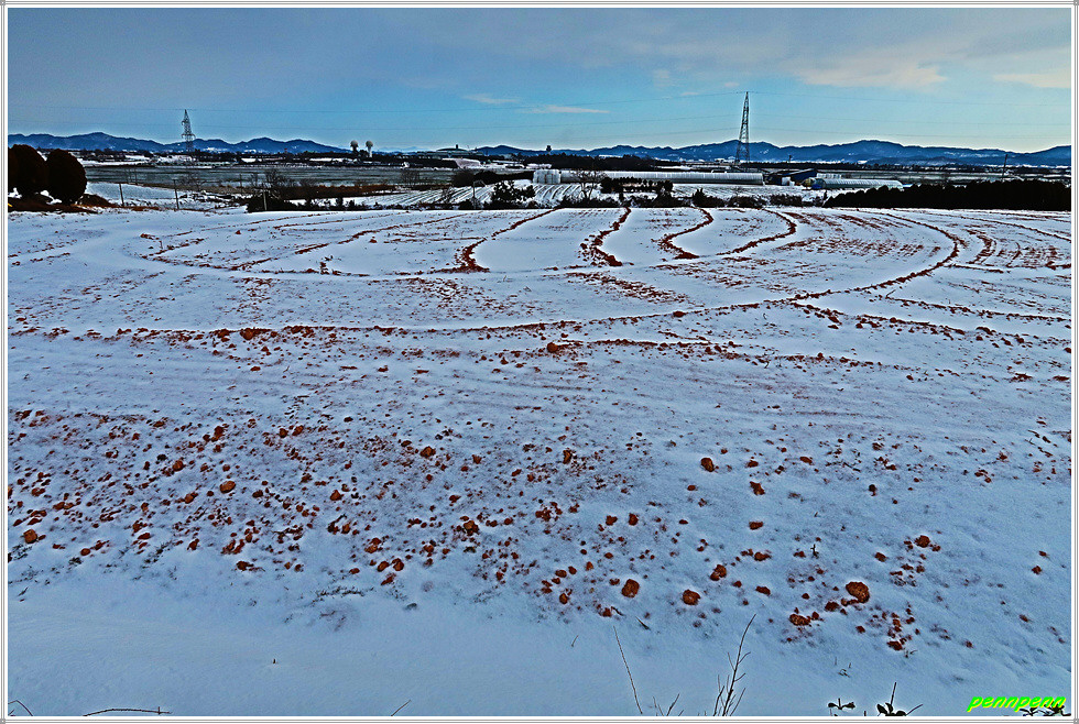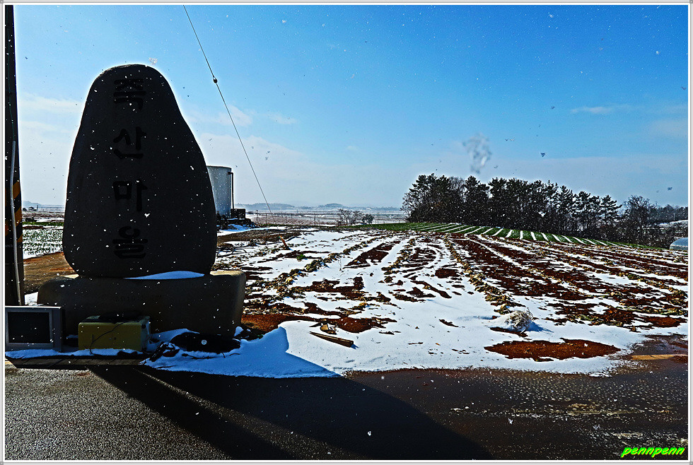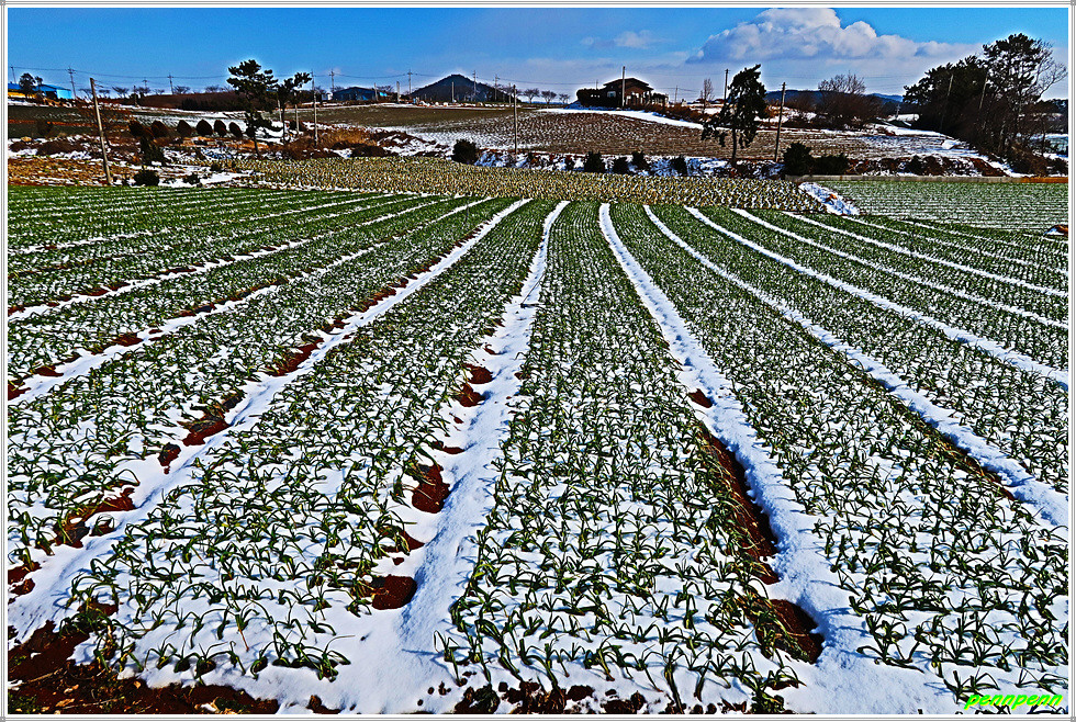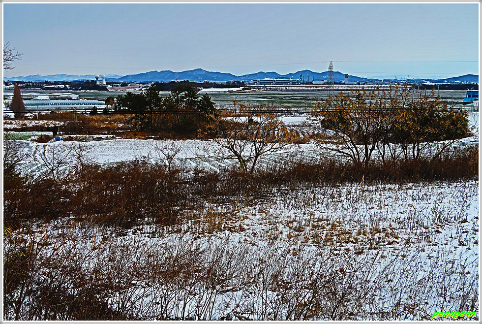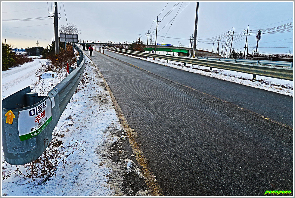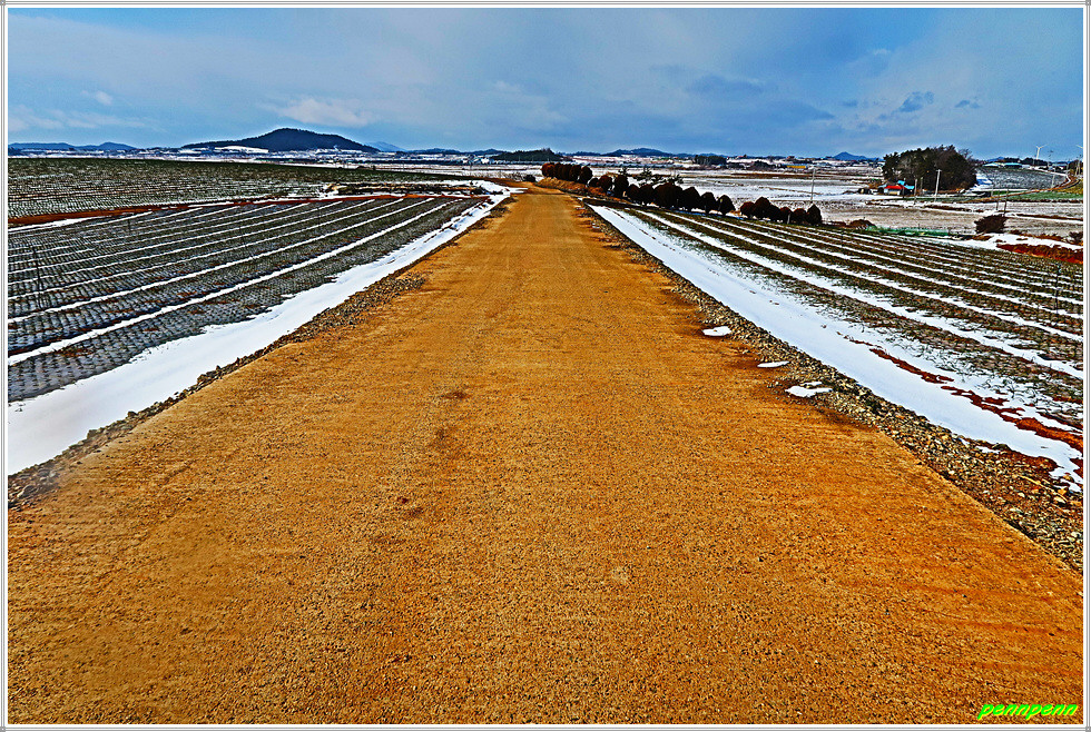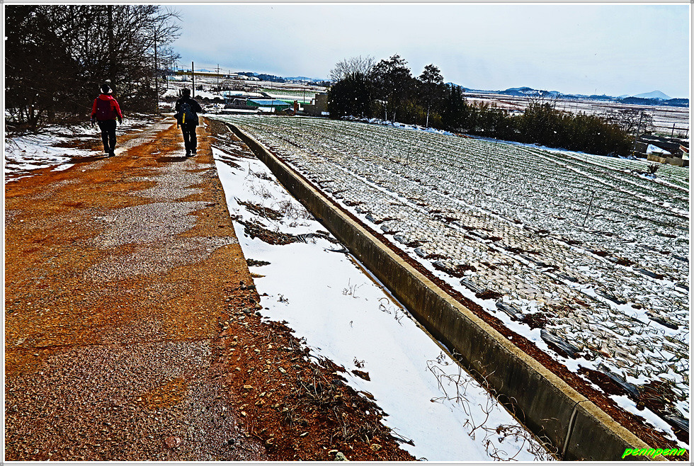오늘 11km를 걷는데 2시간 30분이 소요되었습니다. 거리를 좀 단축하려고 원래의 코스에서 벗어났다가 길을 찾아 헤매는 바람에 겨우 800m 단축에 그친 대신 바른 길을 찾느라고 신경을 많이 쓴 트레킹이었습니다. 그래도 중간에 흩날리는 눈도 맞았고 비록 평지의 농경지이지만 백설로 뒤덮인 대자연의 모습과 넓은 양파밭은 지루하지 않아서 참 좋았습니다. 다만 코스변경으로 인해 동암리 소재 사도세자의 위패를 모신 동암묘(東巖廟)를 답사하지 못한 것은 매우 아쉬운 대목입니다.