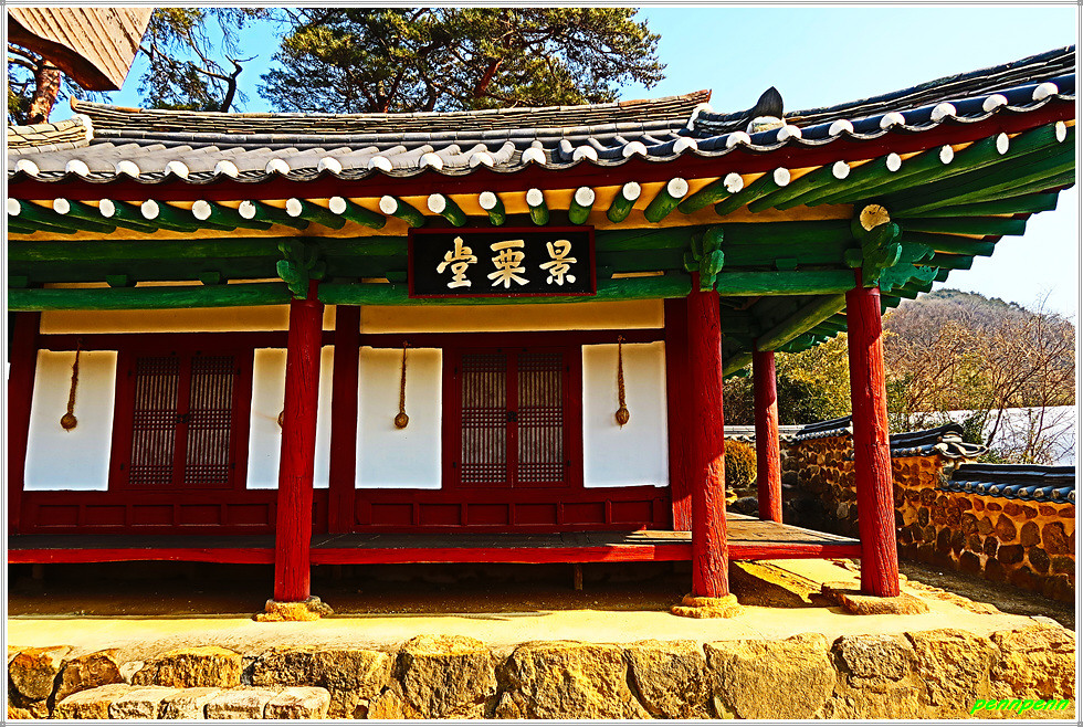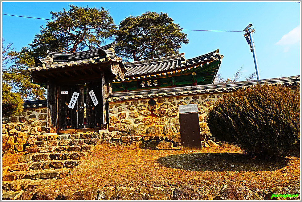 경율당은 1735년 조선 영조 때의 학자인 전후증(全后曾)이 후학들을 가르치기 위해 세운 서당입니다. 전후증은 율곡의 학덕을 숭모해 호를 경율당(景栗堂)이로 짓고 서당이름도 경율당으로 했다는군요. 그런데 율곡의 학덕을 숭모했으면 경율당(景栗堂)을 공경할 경(敬)자를 사용해야 할 텐데 경치 경(景)자로 지은 연유를 필부필부로서는 잘 모르겠습니다.