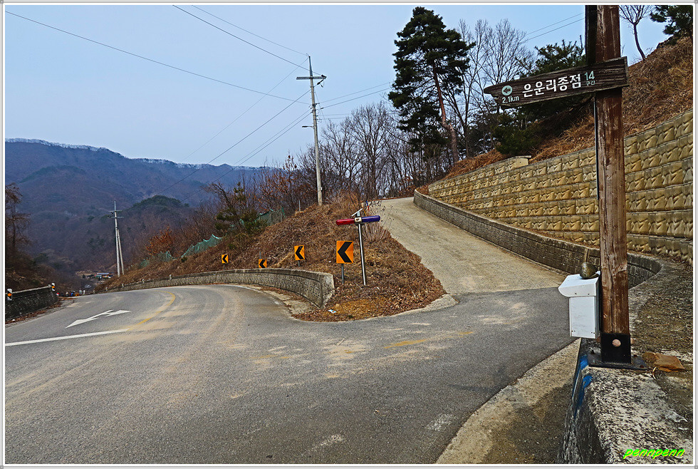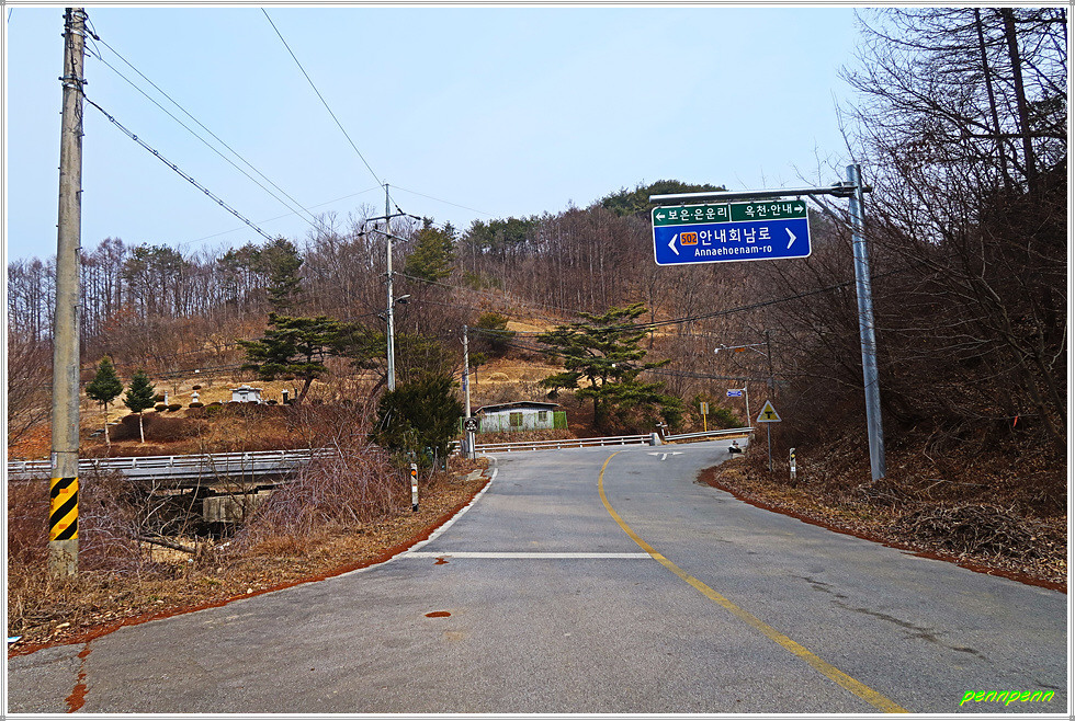 가산사를 뒤로하고 담양2교와 담양1교를 건너면 목적지인 은운리 경노당인데 이곳의 행정구역은 보은군 회남면 은운리로 이곳은 충북 옥천군 안내면과 보은군 회남면의 경계입니다. 오늘 약 11km를 걷는데 3시간이 걸렸습니다. 원래 거리는 8.5km이지만 탑산이에서 북쪽으로 돌아오는 바람에 거리가 약 2km 이상 늘어난 것입니다. 이번 구간은 명색이 대청호 오백리길이지만 대청호는 물론 이를 이루는 금강의 물길도 만나지 못한 채 임도와 산길 그리고 차도만 지루하게 걸었습니다. 이런 길을 대청호 오백리길로 설계한 옥천군 당국의 만용이 그저 놀라울 따름입니다.
