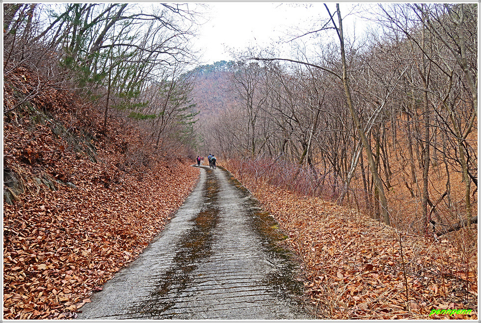 가장 높은 봉우리(473m)를 지나 내려가면 이정표가 없는 삼거리갈림길인데 여기서 직진해 맞은 편 봉을 오르면 용문산(499m)이라고 하지만 이곳을 왕복할 마음의 여유가 없어 그냥 우측으로 내려섭니다. 임도를 다시 만나 솔목이갈림길에서 좌측 장고개방면으로 갑니다. 이제부터 길은 장고개까지 임도로 이어지다가 장고개에서 목적지인 은운리까지는 차도입니다. 계곡을 빠져 나가는 길은 깊고도 길어 그야말로 심산유곡이라고 부를 만합니다.