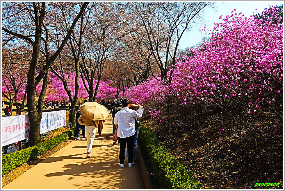 조금 들어가면 김소월의 진달래꽃 시비가 있는데, 공식 축제 개최 이틀 전이지만 벌써 많은 사람들이 이곳을 찾아 봄꽃의 향연을 즐기고 있습니다. 특히 금년에는 봄꽃의 개화가 약10일 정도 빨라 진달래는 거의 만개한 듯 보여집니다.